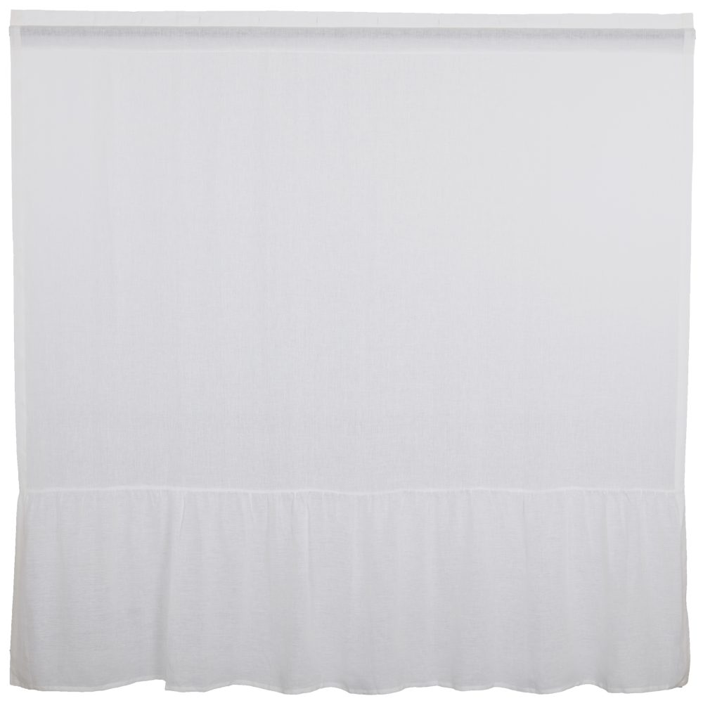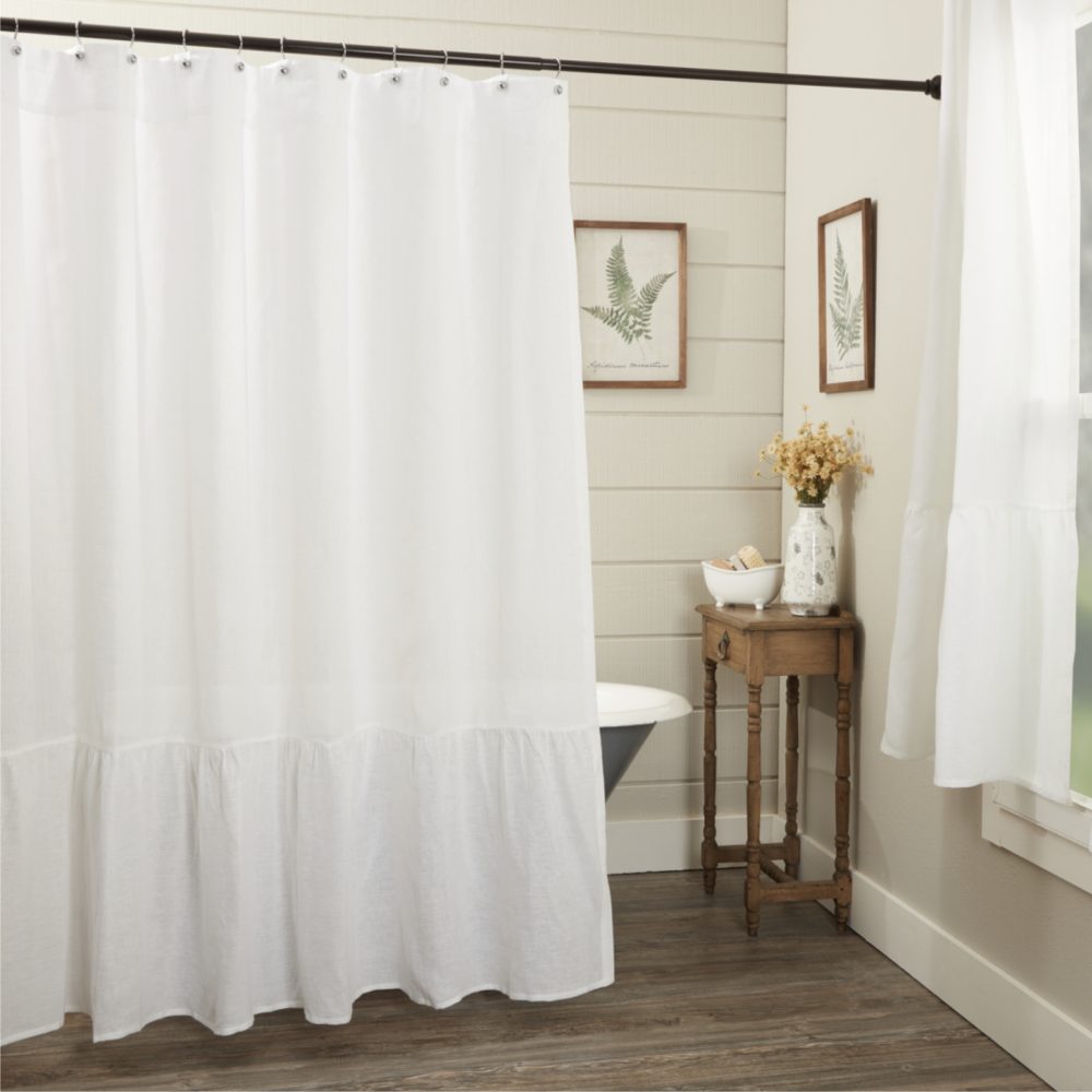 If you're looking for sumptuous fabric for your farmhouse that's in a class by itself, our Provincial Linen tops the charts!! A premier choice in livable opulence, the delicious material is gorgeous beyond belief. Featuring timeless style with casual elegance, the textile presents a crisp touch initially, which gives way to a softer more supple hand-feel quickly, with wear. Considered one of the most durable natural fabrics in the world, linen lasts for decades and wears exceedingly well. Its signature, softly-wrinkled finish, and beautiful drape add soft, gorgeous texture, dressing up your home in comfort and sophistication. The White Shower Curtain adds luxurious linen and lush softness to your bathroom in a fresh, crisp white, designed to brighten and enhance today's modern homes beautifully. The lightweight, breathable weave features generous ruffles on the bottom that gracefully cascade to the floor in a romantic style. A rod pocket and buttonholes offer two hanging options.