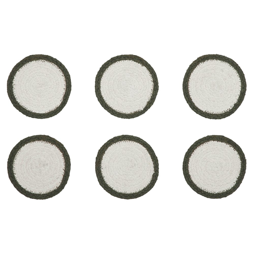 Embrace the heartwarming charm of autumn with the VHC Brands Pumpkin Bounty Stencil Braided Cotton Coaster Set of 6. Each round coaster, meticulously woven from a durable cotton-polyester blend, brings a touch of rustic elegance to your farmhouse-inspired table. Adorned with a lovingly stenciled harvest pumpkin, these coasters bloom in a comforting palette of creamy ivory, fiery burnt orange, and verdant cypress green, mirroring the rich tapestry of the fall season. Imagine the soft glow of candlelight dancing across their braided texture, inviting a cozy, gathered atmosphere perfect for welcoming the crisp air and golden leaves indoors, effortlessly blending cottage core whimsy with enduring country style. Beyond their captivating visual appeal, these generous coasters offer steadfast protection for your precious tabletops, cradling your mugs of spiced cider or warm cocoa with genuine country grace. Their ample size ensures your favorite drinkware rests securely, preventing water rings and spills as you gather loved ones for intimate celebrations. Effortlessly maintain their vibrant allure with a simple hand wash, ensuring they remain a cherished part of your holiday traditions, from bountiful Thanksgiving feasts to playful Halloween gatherings, weaving a continuous thread of comfort and joy into your home's story.