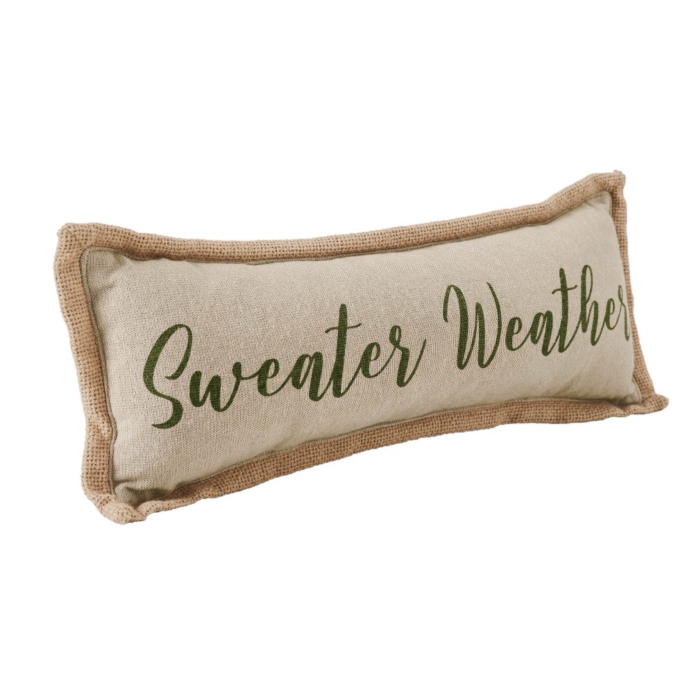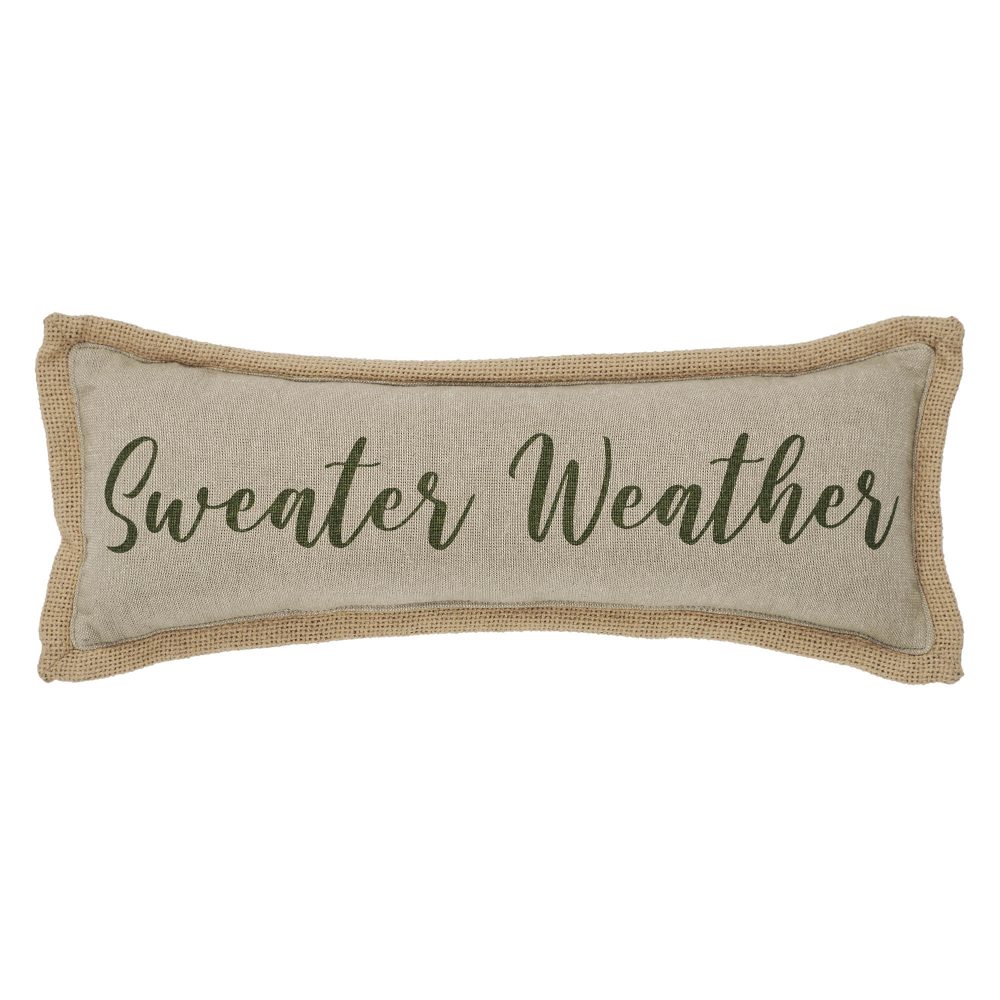 • AUTUMN AESTHETICS & QUALITY CONSTRUCTION: Infuse your space with cozy Farmhouse and Cottage Core charm using the VHC Brands “Pumpkin Bounty Sweater Weather” Pillow, a 5×15 inch rectangular decorative accent precisely crafted from a durable cotton and polyester blend, showcasing an inviting tan hue with subtle cypress green accents and elegantly printed “Sweater Weather” text, engineered for lasting beauty and easy spot clean care to effortlessly enhance your fall and Thanksgiving decor.