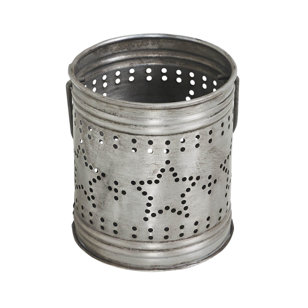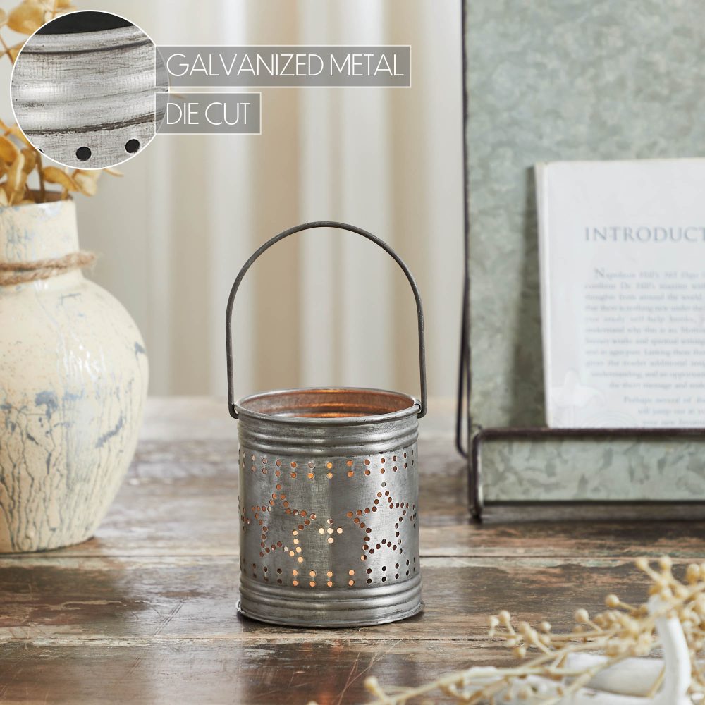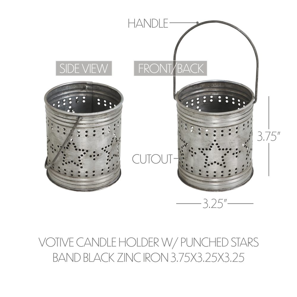 - Patriotic Star Design: Features a round black zinc votive candle holder with intricate tiny star cutouts arranged in bands, with a larger star outline at the center, creating a stunning light display.