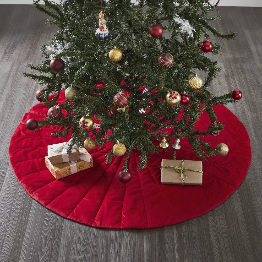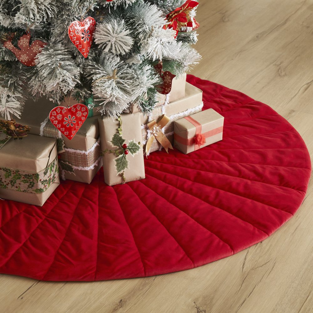 - Solid Red Velvet Design: Features a solid red velvet tree skirt with channel quilting, providing a bold, festive base for your Christmas tree.