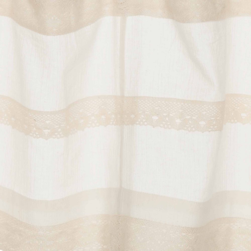Lightweight and soft to touch our Quinn Creme Tab Top Valance 16x90 offers a timeless, versatile look for your home. Featuring all-cotton construction, a white background, and creme lace for added texture. This elegant curtain is perfect for your farmhouse kitchen or bath area. The sheer fabric lets natural light flow into your home to brighten up your space.