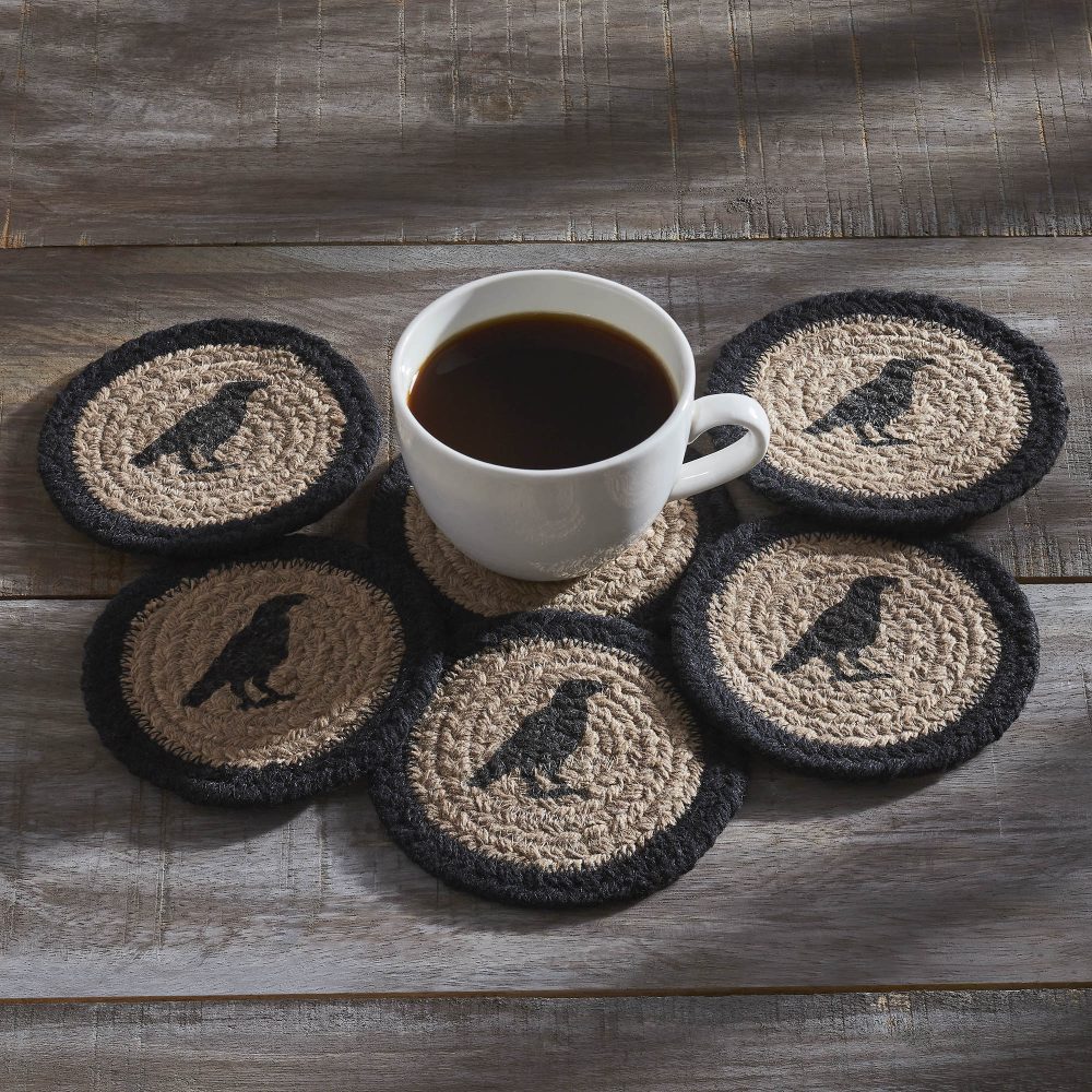 - Sku – 85535 – Raven Harvest Autumn Stenciled Drink Coasters Durable Tabletop Protectors, Set of 6 for Fall Decor (2 Packages)