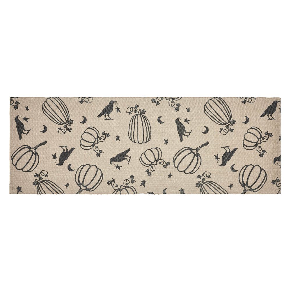 - FARMHOUSE DURABILITY MEETS FESTIVE CHARM: Elevate your indoor or outdoor space with this 17×48-inch runner, expertly crafted from resilient recycled plastic to repel moisture and dirt, while enchanting with whimsical autumn motifs of ravens, pumpkins, and stars.