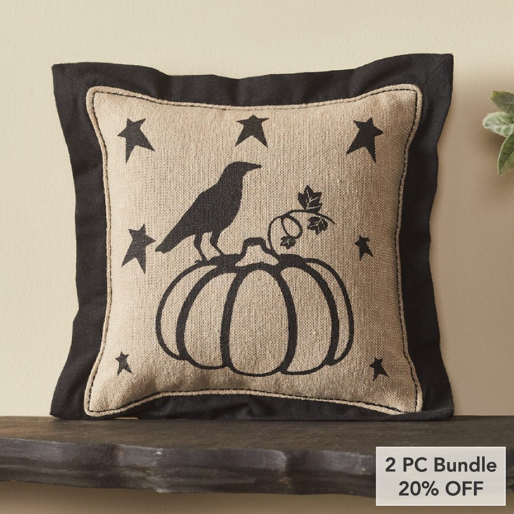 - Sku – 85530 – Raven Harvest Primitive Pumpkin Decorative Pillow 6×6 Inch Farmhouse Fall Accent Cushion (2 Packages)