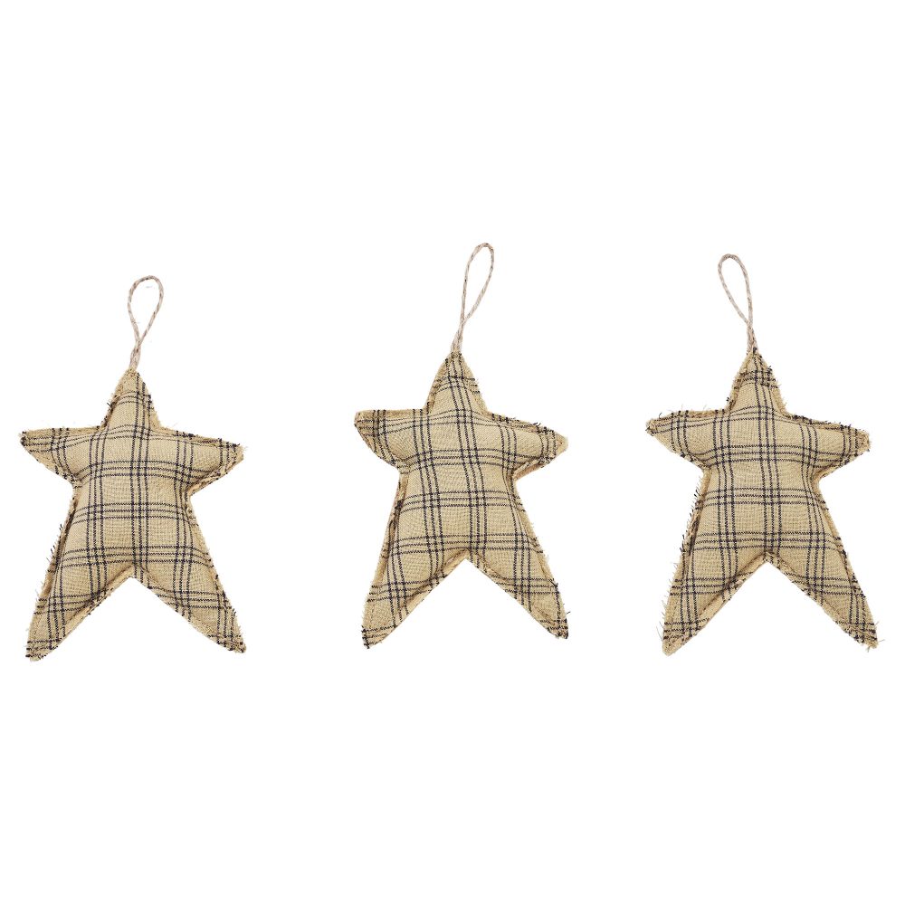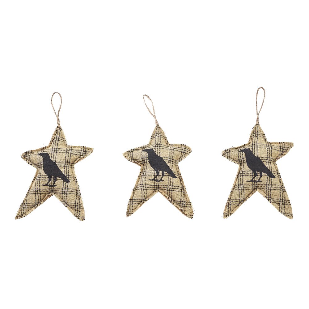 Unfurl the golden hues of autumn within your home with the VHC Brands Raven Harvest Primitive Star Bowl Filler Set. Each of the three exquisitely crafted cotton fillers, measuring a charming 4x3 inches, embraces the rustic spirit of the harvest season. Delicately adorned with primitive raven and star designs in a soothing palette of tan and deep country black, these textural treasures effortlessly weave a story of cozy tradition, perfect for curating that sought-after farmhouse allure or a whimsical cottage core tableau on your kitchen table or mantel. Beyond mere decoration, these primitive star and raven accents infuse any space with a tangible sense of warmth and character. Whether nestled in a rustic wooden bowl, artfully scattered across a vintage tray, or creating charming vignettes on a shelf, their unassuming beauty transforms dining rooms, entryways, bedrooms, or living spaces into inviting havens. Elevate your fall displays with these timeless cotton elements, cultivating an atmosphere that beckons friends and family to gather and linger, embracing the simple joys and comforting embrace of the autumn season.