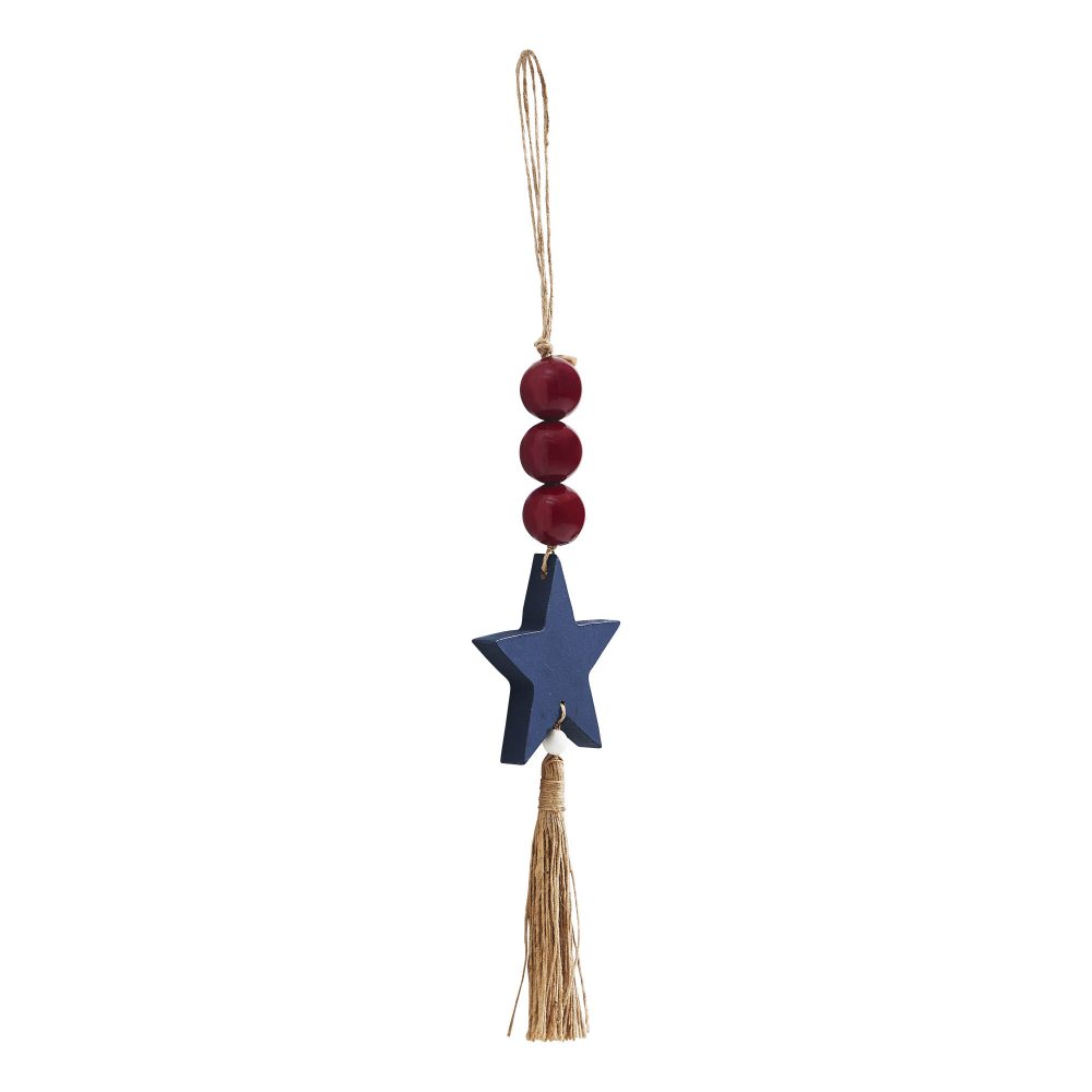 - Patriotic Star & Bead Design: Features a hanging strand of 3 burgundy beads and a 5-point navy blue star, tied with a tassel at the bottom, perfect for adding a patriotic touch to your home decor.