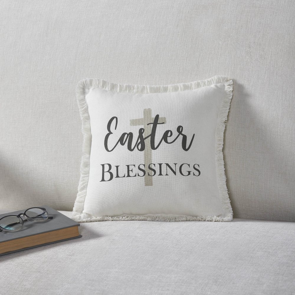 Risen Easter Blessings Cross Pillow 12×12