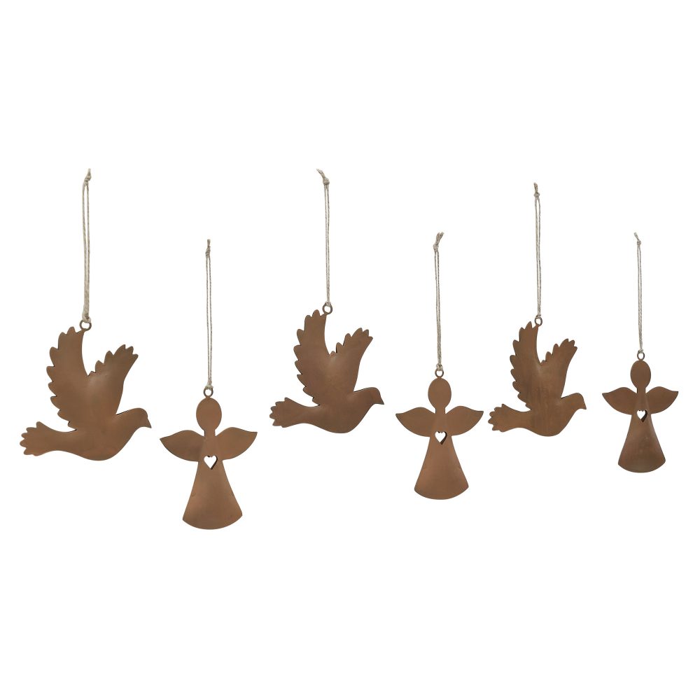 Rust Angel and Dove Metal Ornaments Set of 6 – 4.5/5 inch