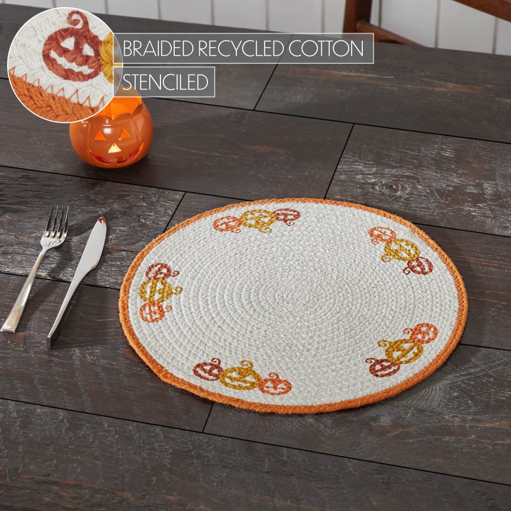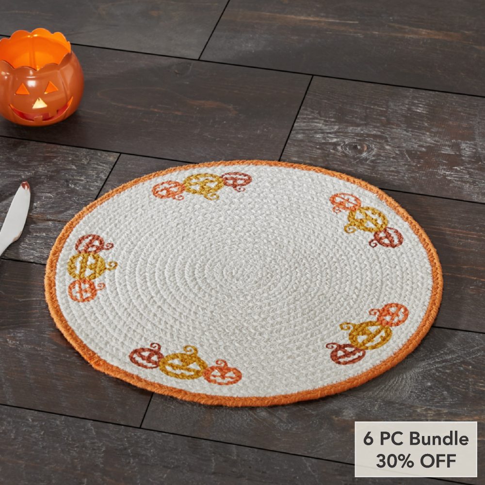 - Sku – 85519 – Rustic Farmhouse Halloween Round Placemat 14 inch Stencil Fabric Table Mat with Autumn Pumpkin Bat Design Set of 4 for Fall Decor (6 Packages)
