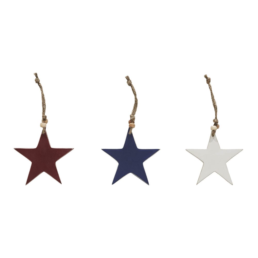 - Set of 3 RWB Wooden Star Ornaments: The VHC Brands Patriotic RWB Wooden Star Ornaments, crafted from tropical wood and measuring 4x4x0.25 inches each, come in a set of 3, providing a charming and patriotic touch to your Independence Day decor.
