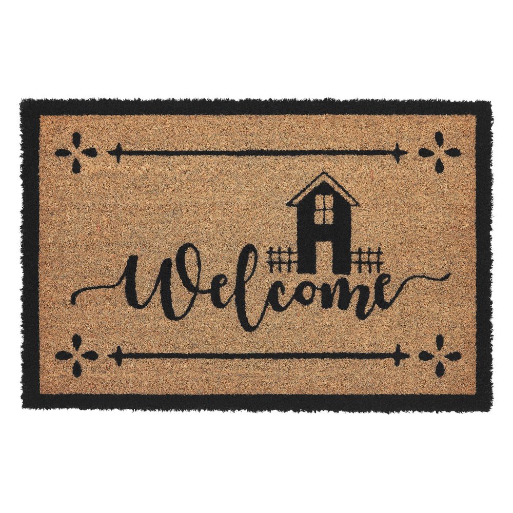 - Charming Design: Features a classic saltbox house and fence next to a welcoming “Welcome” message in country black, adding a rustic touch to your entryway.