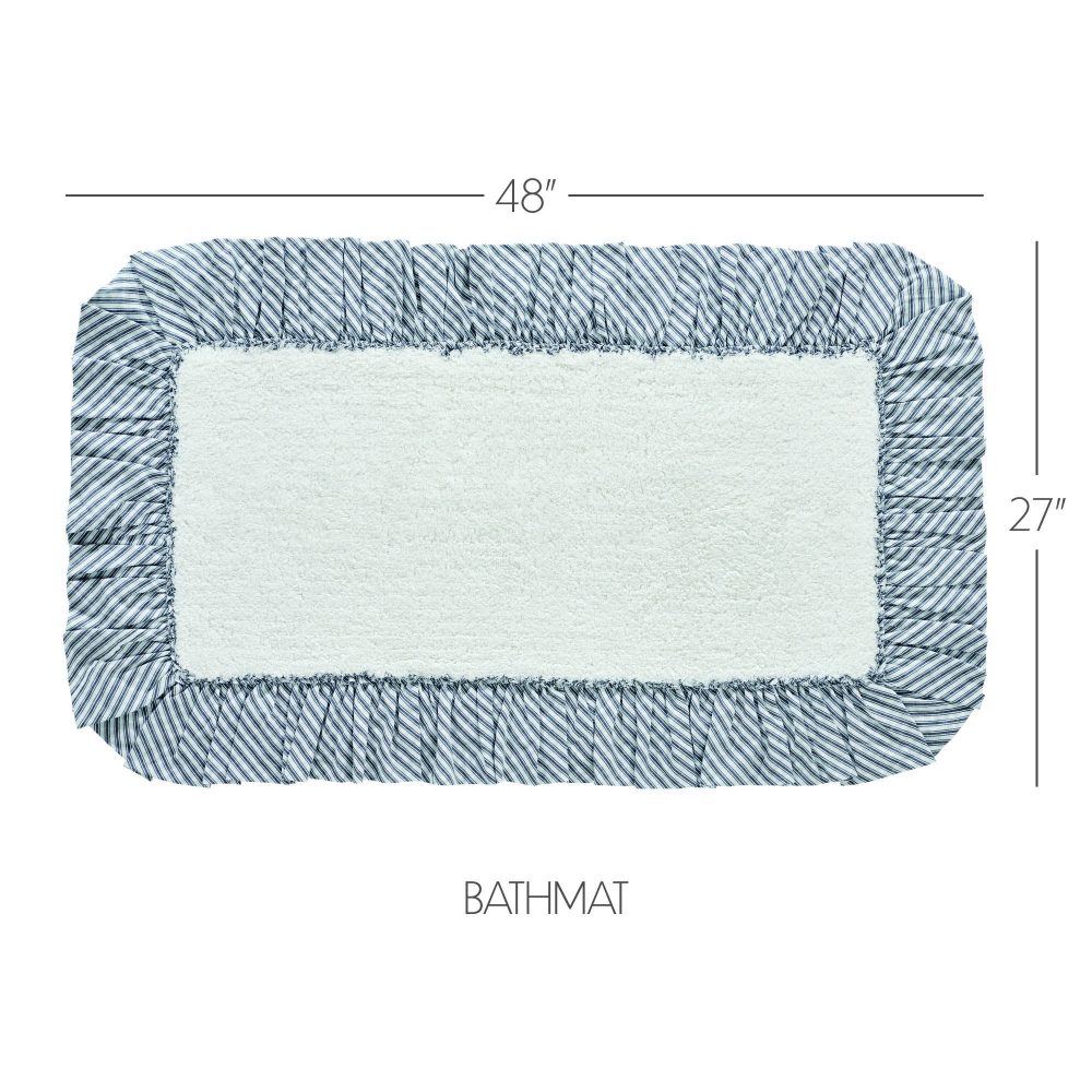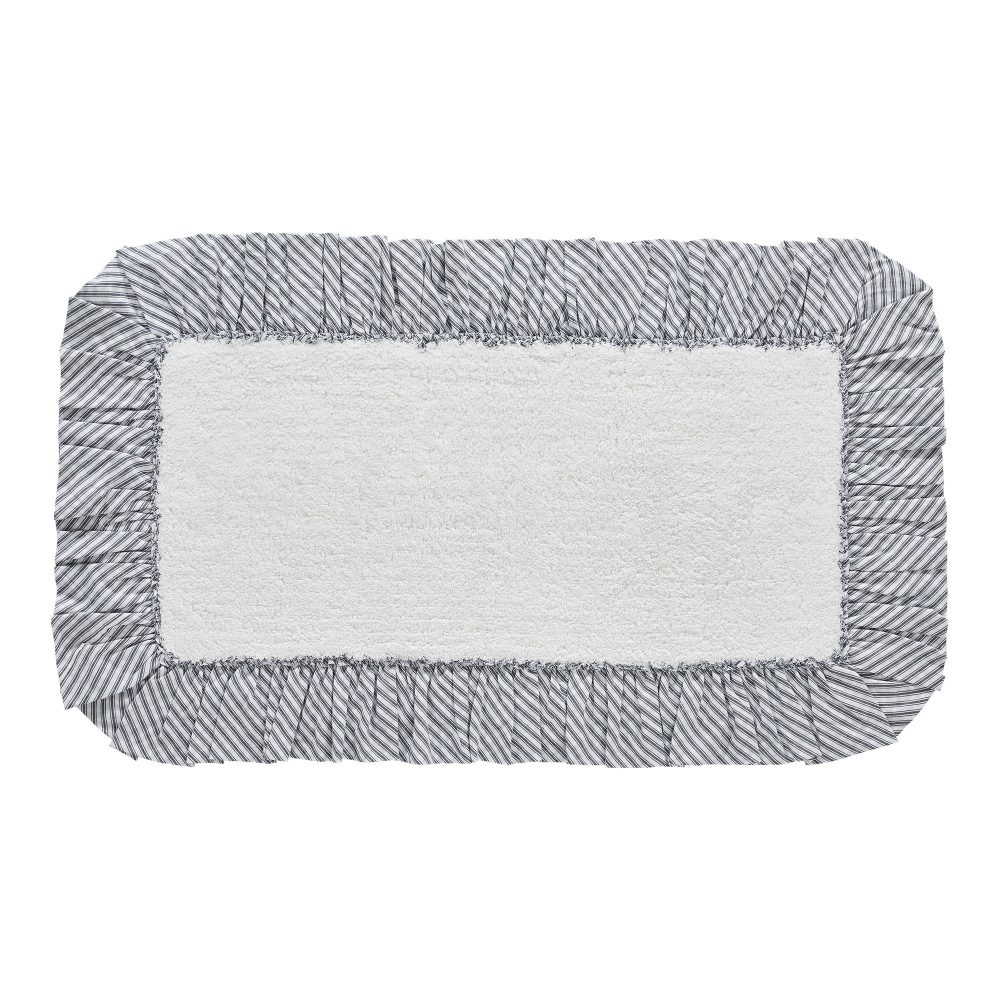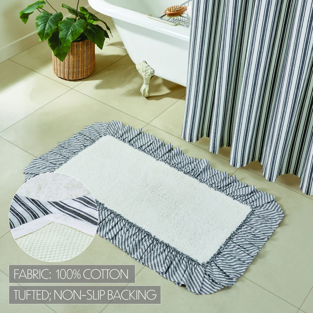 Step out of the shower and into cozy country farmhouse bliss. The Sawyer Mill Black Bath Mat 27x48 features a solid creme core in premium, ultra absorbent cotton. It is trimmed with a ruffled striped fabric in country black and soft white. Backed with textured rubber to produce a quality, non-slip surface without the need for a separate rug pad. This ruffled bath mat is a great finishing piece for bathrooms or laundry rooms where you need the perfect balance of style and functionality.