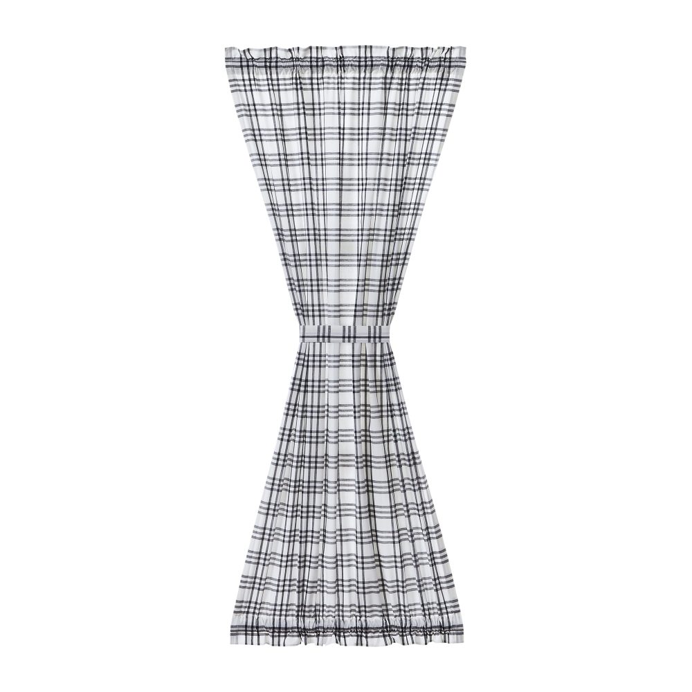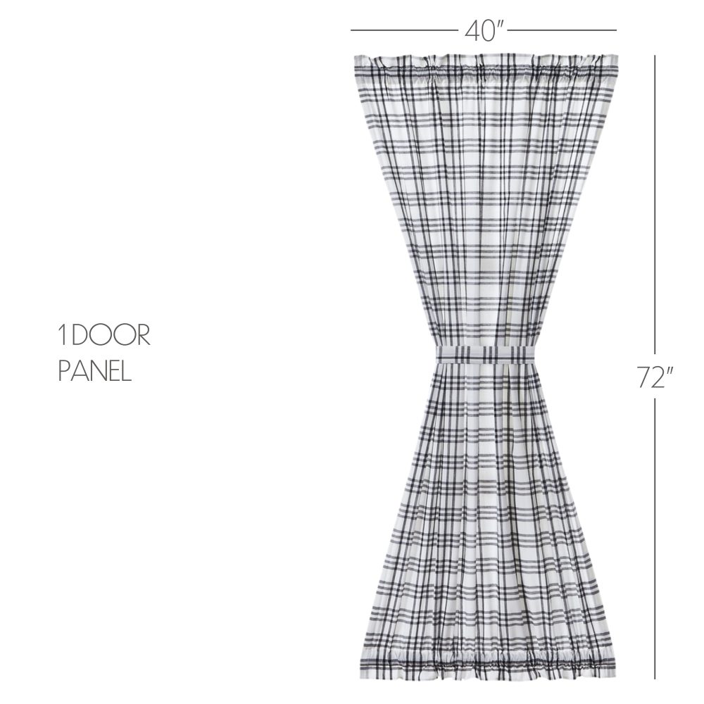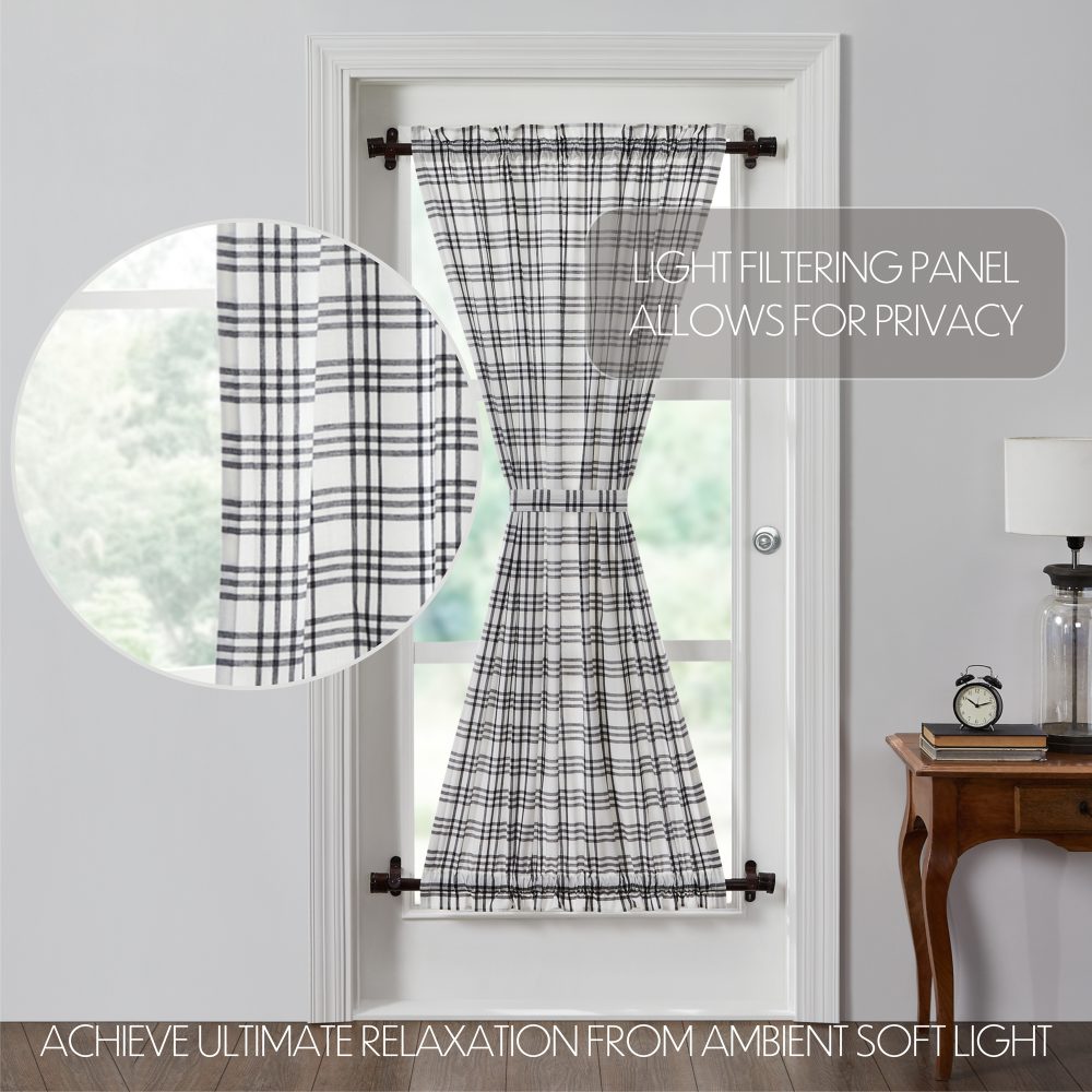 Create a modern farmhouse look for your home. The Sawyer Mill Black Plaid Door Panel 72x40 features clean black and cotton white in a classic plaid pattern on a quality 100% cotton material. Lined with soft, white fabric, the panel provides privacy while adding style. Includes 1 matching tieback with a button to wrap around the center for a different look and two rod pockets for easy hanging.