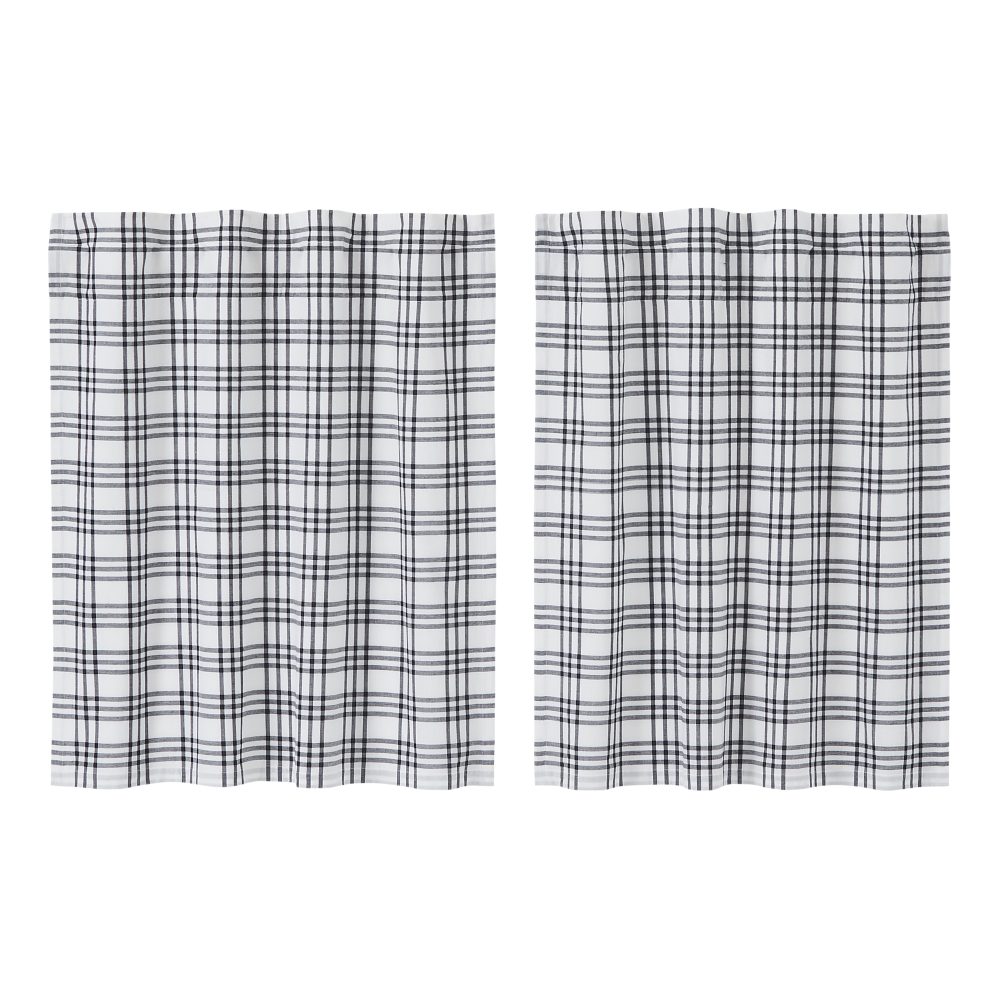 Create the perfectly charming country window of your dreams with these 36 x 36 inch tier-style curtains. Featuring country black and soft white plaid, the Sawyer Mill Black Plaid Tier Set provides just the right balance of privacy and sunshine. Pair with a matching valance or prairie swag for a fully decorated look or alone for a simple pop of color and character. Also known as cafe or bistro curtains, these are a particularly good fit for decorating farmhouse kitchens, laundry rooms, and small bathroom windows.