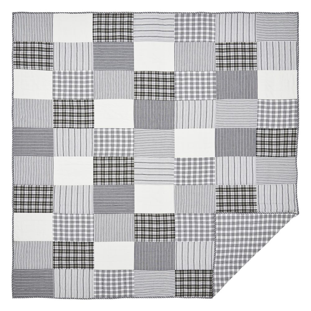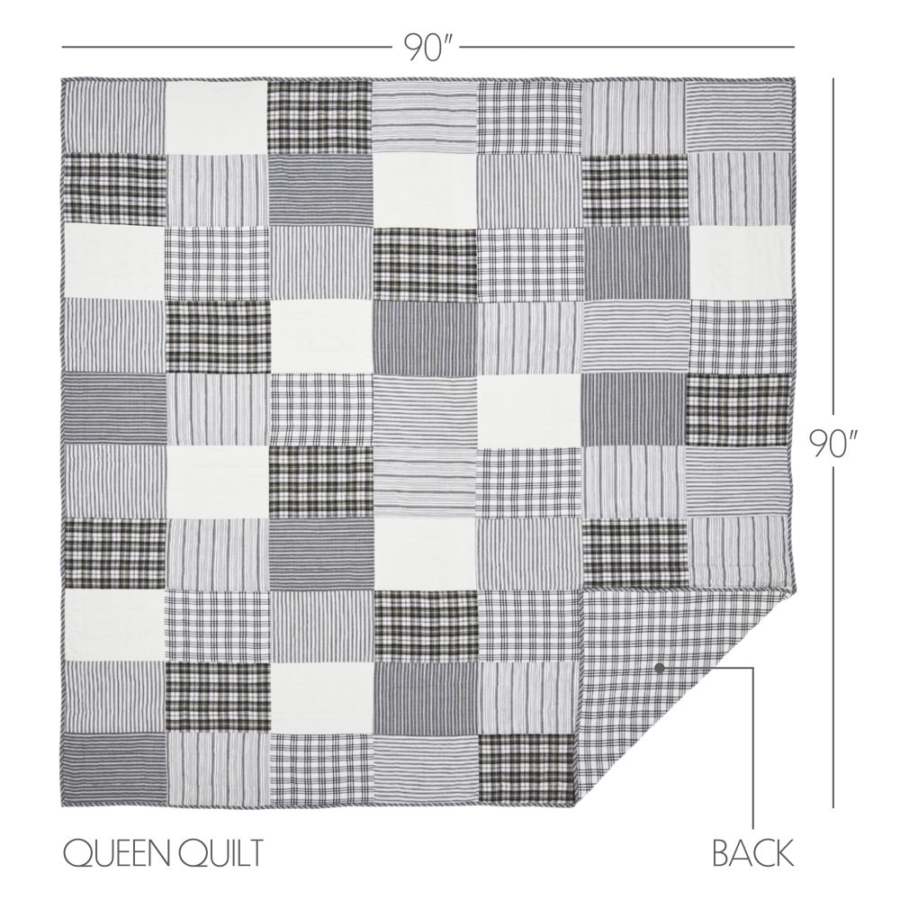 Capture the feel of modern farmhouse decor with a classic patchwork quilt in simple black and white patterns. The Sawyer Mill Black Queen Quilt measures 90 by 90 inches and features hand stitching for a superior finish built to last. The country chic quilt includes a mix of plaids, stripes, and solid blocks. Reverses to a simple black and white windowpane plaid. Constructed from 100 percent cotton, this soft quilted bedspread is machine washable and iron safe. Coordinates with the Sawyer Mill Collection by VHC for classic farmhouse style and the quality you can expect from over 20 years of happy customers.