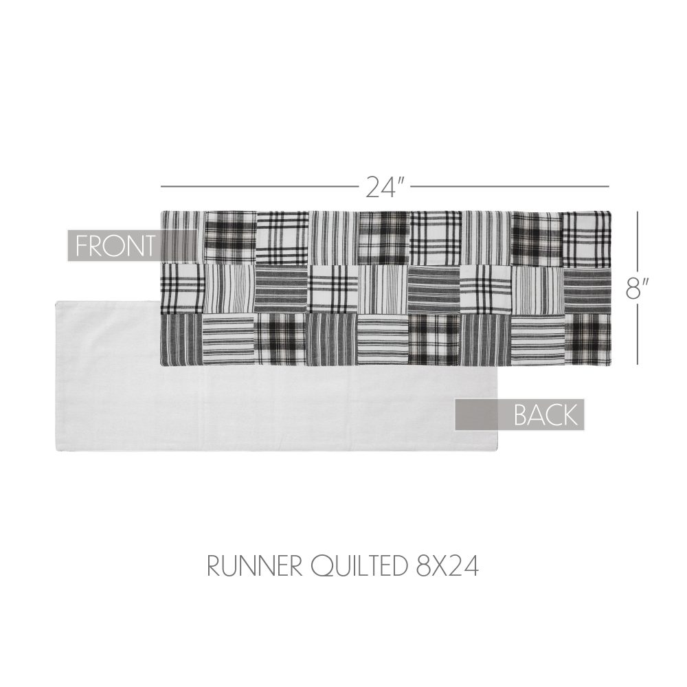 - Elevate your dining area with the rustic charm of the Sawyer Mill Black Collection’s 8×24 Country Black table runner, perfect for Farmhouse and Country decor.
