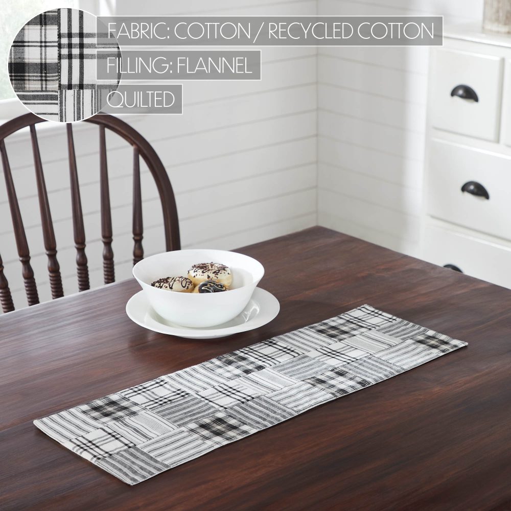 Elevate your dining room or kitchen decor with the Country Black 8x24-inch table runner from the Sawyer Mill Black Collection. Exemplifying classic Country Farmhouse style, this runner features a captivating Patchwork design that adds a rustic charm to your table setting. Crafted from durable Cotton with a Flat Weave, it seamlessly combines beauty and functionality, making it a versatile addition to your home. The Sawyer Mill Black Collection's quilted 8x24-inch table runner in Country Black brings the timeless essence of Country Farmhouse style to your dining space. Its striking Patchwork design evokes a sense of warmth and tradition, perfect for family gatherings and special occasions. Crafted from durable Cotton with a Flat Weave, this runner not only radiates Primitive charm but also holds up to the demands of daily life. Enhance your table with this exquisite piece that harmoniously blends style and utility. Transform your dining area or kitchen with the Country Black 8x24-inch table runner from the Sawyer Mill Black Collection. This runner embodies the essence of Country Farmhouse style, featuring a captivating Patchwork design that exudes a Primitive appeal. Crafted from durable Cotton with a Flat Weave, it combines the beauty of design with the resilience needed for everyday use. Perfect for creating inviting tablescapes, this runner is a versatile and stunning addition to your decor, offering a touch of tradition and charm to your home.