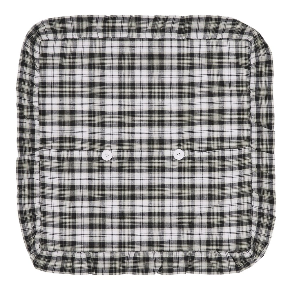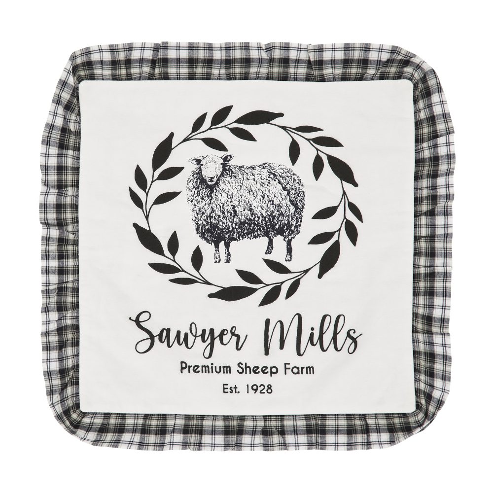 Modern farmhouse decor wouldn't be complete without a touch of farm animal charm. The Sawyer Mill Black Sheep Pillow Cover brings just that with its clean, black and white styling and richly detailed sheep farm logo. A deep ruffle in black plaid adds a cozy element while the black plaid backing and button-style closures add an alternate style to fit your needs. Measures 18x18 to fit standard square throw pillow inserts (fill not included). Features double-sewn seams and 100 percent cotton fabric for a durable accent pillow cover. Pair this country chic decorative pillow with additional black and white decor to quickly transform your entire living room or add to an entryway bench for a little taste of country style to welcome guests. For a farmhouse look with the quality you've come to expect from over 25 years of happy customers, pair with other classic home staples and accessories from the Sawyer Mill Collection by VHC.