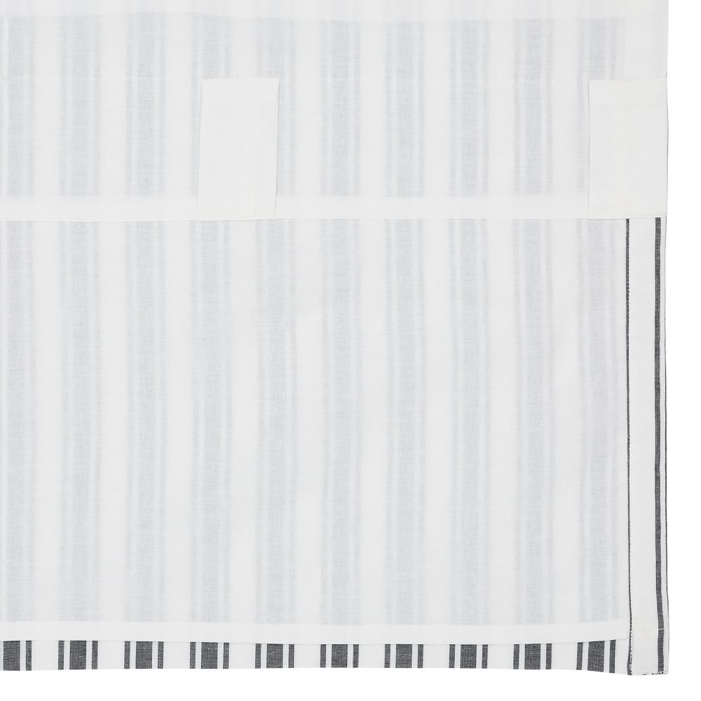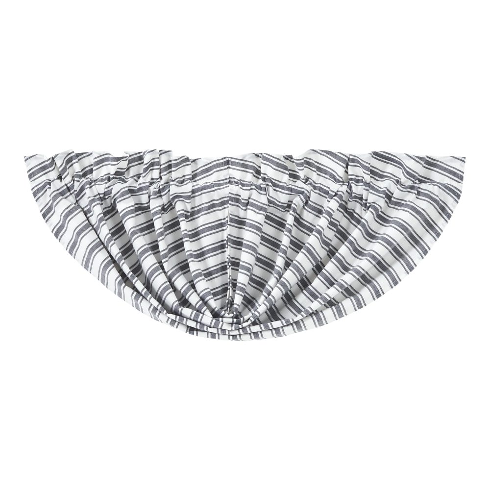 Accent your home with our Sawyer Mill Black Ticking Stripe Balloon Valance. The classic country valance offers a farmhouse aesthetic of black and soft white in a charming striped pattern. The curtain measures 15x60 and features a flat weave for a modern farmhouse look. Rod pockets are included near the top of this ticking stripe valance for easy hanging.