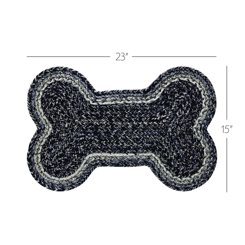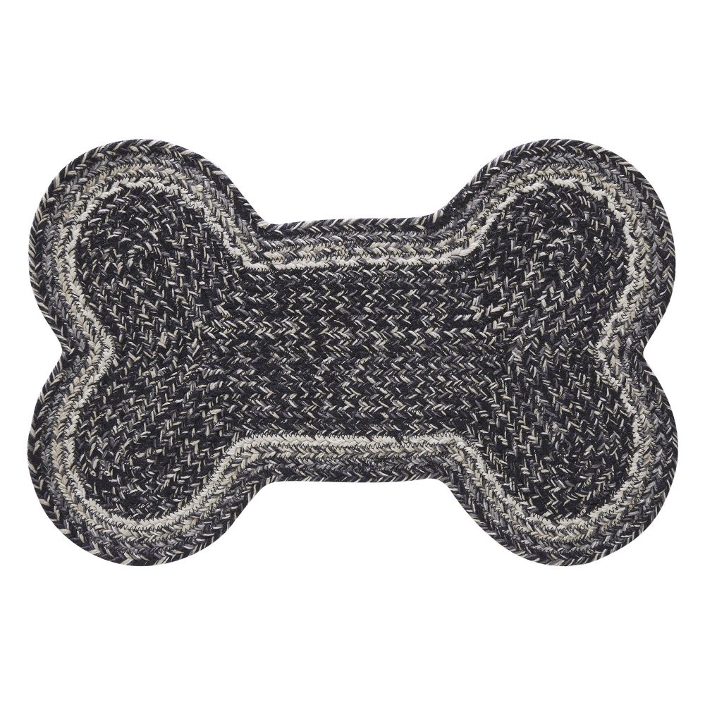 Give your pet a rug that is both stylish and practical. The Sawyer Mill Medium Bone Rug measures 15x23 inches and is crafted with 100% recycled polyester material (PET) making it waterproof and durable. The bone-shaped pet rug is suitable for both indoor and outdoor use and is the perfect home for water and food bowls for medium or large breed dogs. Rich caviar black with pops of grey, tan and creme make this a great match for modern farmhouse looks.
