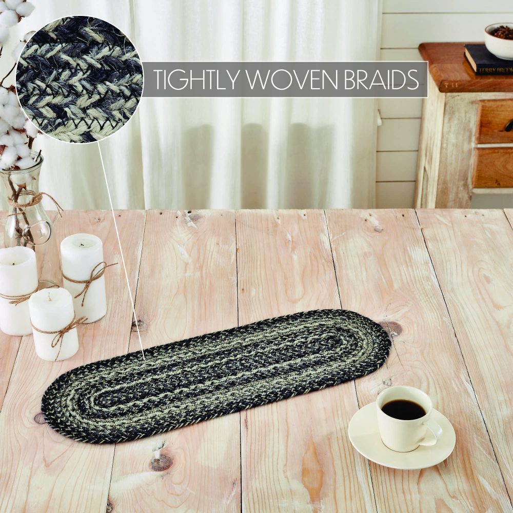 Create a joyful table for friends and family to gather round with modern color and classic texture. The Sawyer Mill Black White Jute Table Runner includes an individual table covering measuring 8x24 inches made from a premium Jute blend. The rich texture of braided jute is given a modern twist with country black, grey and soft creme tones for a neutral modern country style. Complete your tabletop decor with other pieces from the Sawyer Mill Collection by VHC for farmhouse style.
