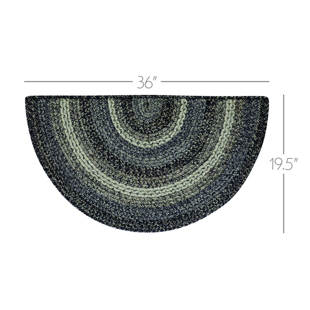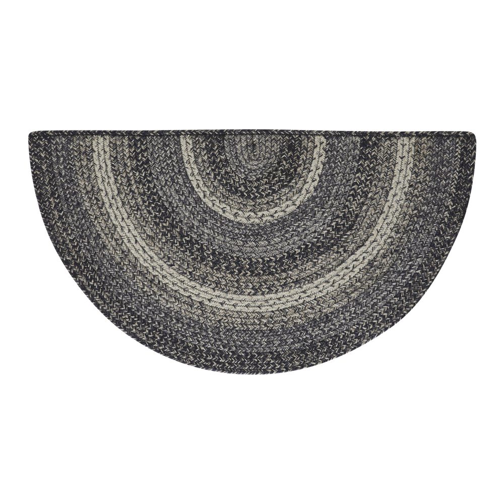 Create a modern, sophisticated entryway or kitchen with bold farmhouse colors in a curl-resistant jute blend that adds style and safety wherever you stand. The Sawyer Mill Black Jute Rug measures 19.5x36 inches and features a classic half circle shape and tight braids constructed with a durable jute blend. The special blend relaxes faster and stays flat. Features a blend neutral black, greys, and cream for a dark, timeless look that complements a wide array of classic country and farmhouse decor.