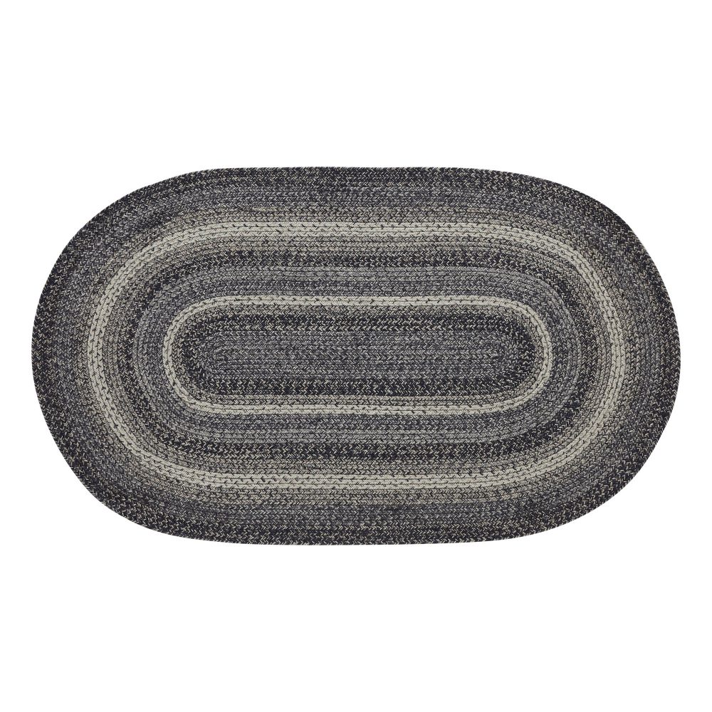 Create a neutral, modern look for your entryway with classic shades of black and creme in a curl-resistant jute blend that adds style and safety. The Sawyer Mill Black White Jute Rug measures 36x60 inches and features a classic oval shape and tight braids constructed with a durable jute blend. The special blend relaxes faster and stays flat. The included PVC mat makes sure your beautifully braided jute rug stays exactly where it should. Features a blend of black, grey and creamy white for a minimalist look that complements a wide array of modern and vintage farmhouse decor.