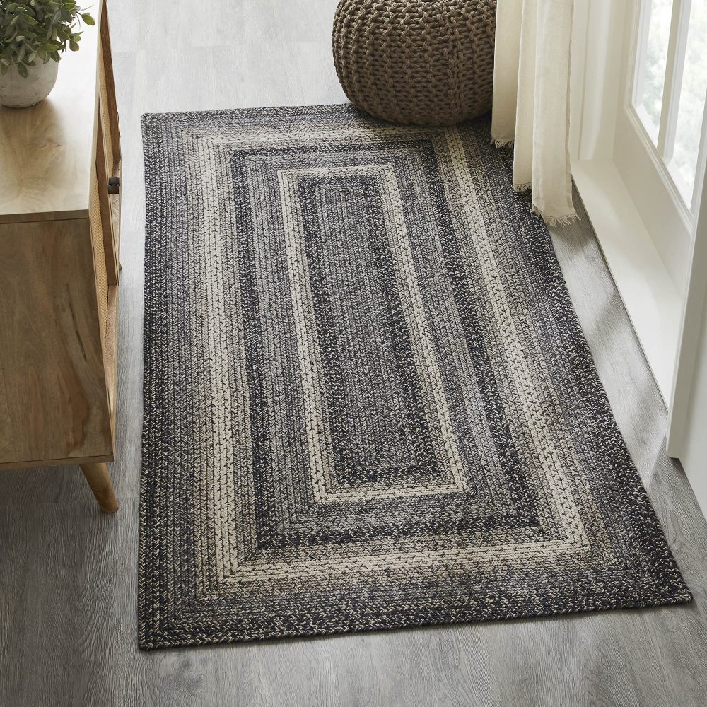 Create a neutral, modern look for your home with classic shades of black and creme in a curl-resistant jute blend that adds style and safety. The Sawyer Mill Black White Jute Rug measures 36x72 inches and features a classic rectangle shape and tight braids constructed with a durable jute blend. The special blend relaxes faster and stays flat. The included PVC mat makes sure your beautifully braided jute rug stays exactly where it should. Features a blend of black, grey and creamy white for a minimalist look that complements a wide array of modern and vintage farmhouse decor.