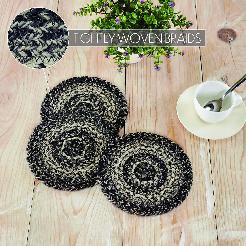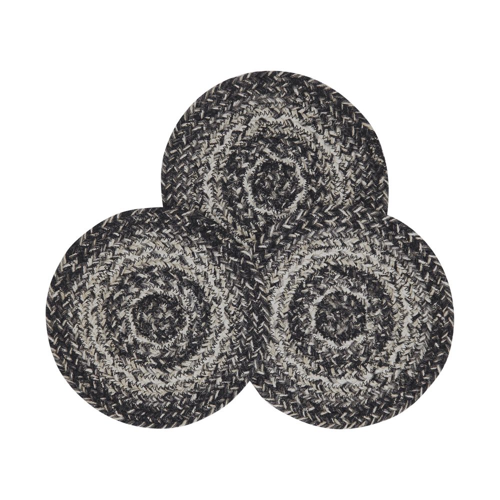 Sawyer Mill Black White Jute Trivet 8 inch Diameter Set of 3