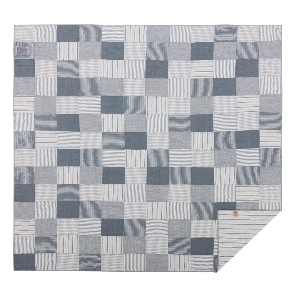 - HAND-QUILTED: This traditional patchwork quilt features Stitch in the Ditch and Echo quilting techniques for superior style and durability. Reverses to a simple, vintage-inspired blue and white striped fabric.