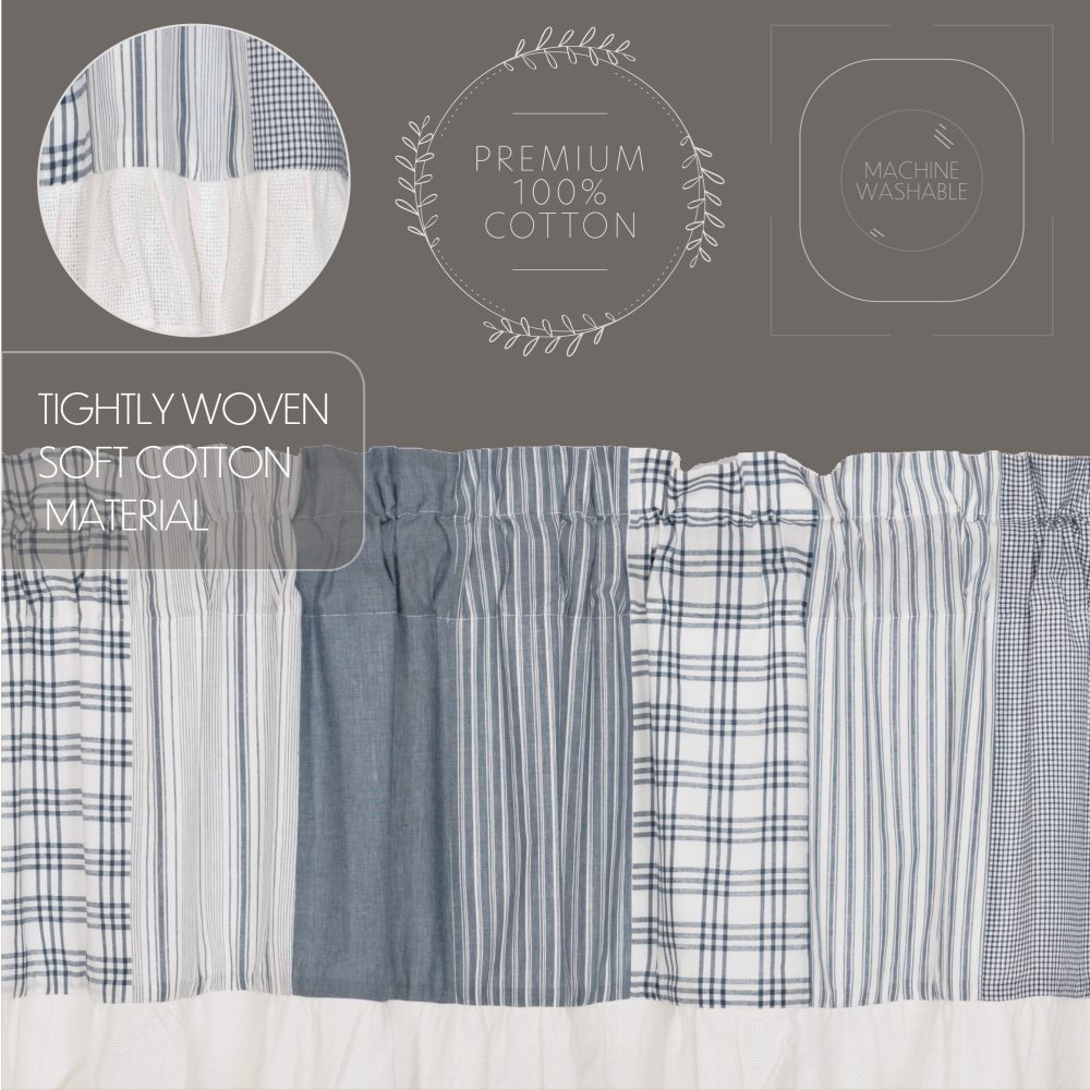 A mix of stripes and plaids comes together to create a farmhouse look that proves that neutral doesn't have to be boring. The Sawyer Mill Blue Patchwork Valance 19x72 features a mix of denim blue and white patterns with a thick band of ruffled white burlap cotton along the bottom. A soft, white cotton lining helps to prevent fading and filter sunlight while a 3.25