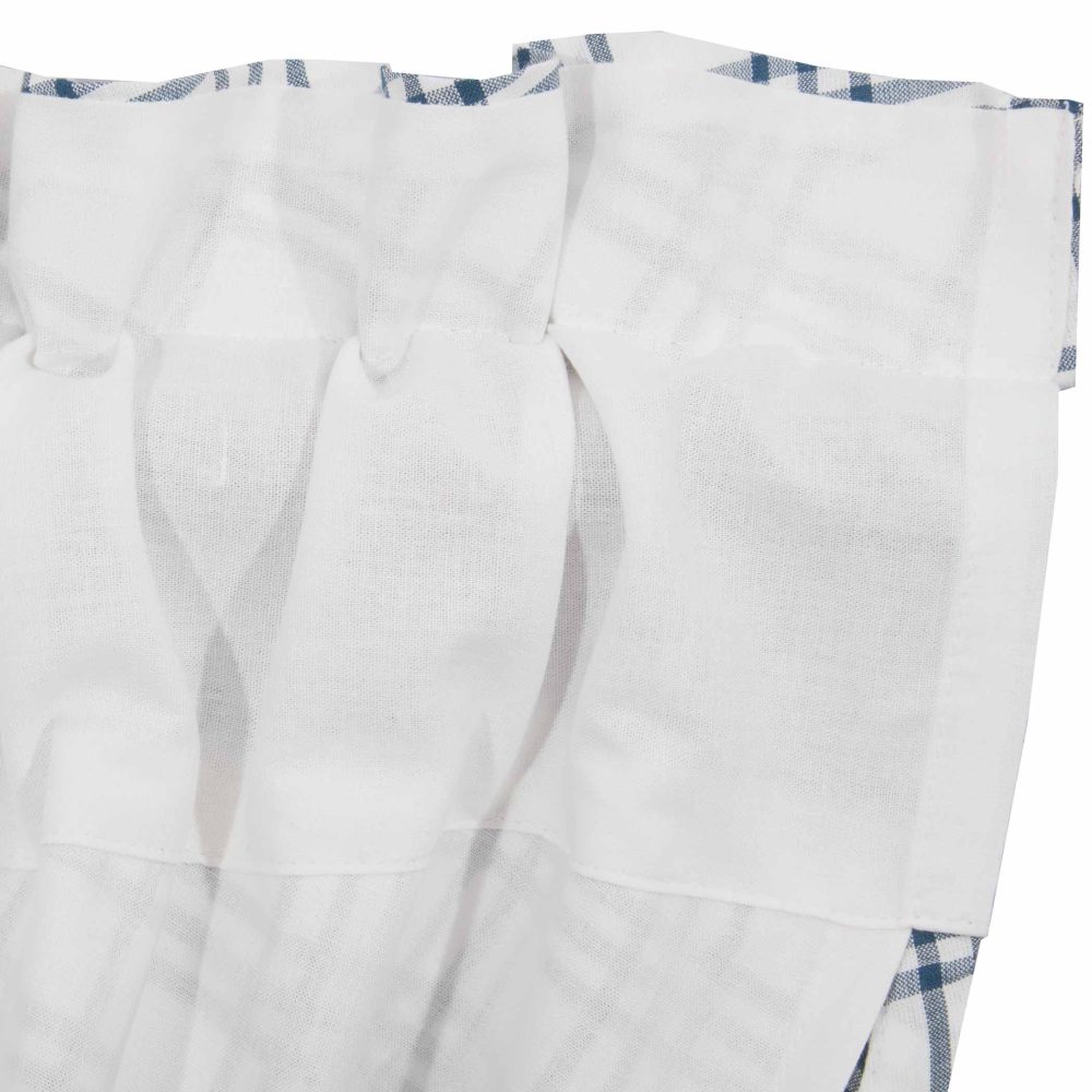 Add a classic country touch to your home with the Sawyer Mill Blue Plaid Balloon Valance 15x60. Denim blue and soft white plaid present a refreshing, farmhouse look to brighten up your space. This country curtain features a rod pocket for easy hanging, lined - 100% cotton.