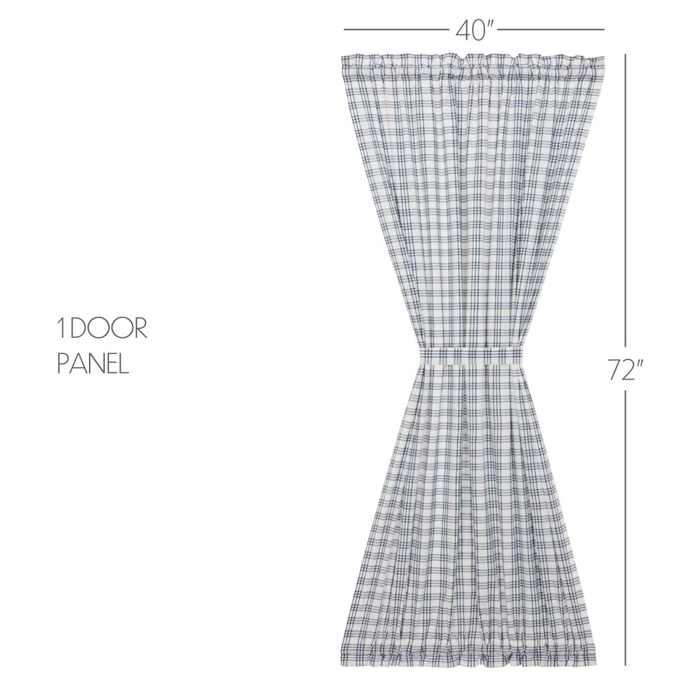 Create a modern farmhouse look for your home. The Sawyer Mill Blue Plaid Door Panel 72x40 features clean blue and cotton white in a classic plaid pattern on a quality 100% cotton material. Lined with soft, white fabric, the panel provides privacy while adding style. Includes 1 matching tieback with a button to wrap around the center for a different look and two rod pockets for easy hanging.