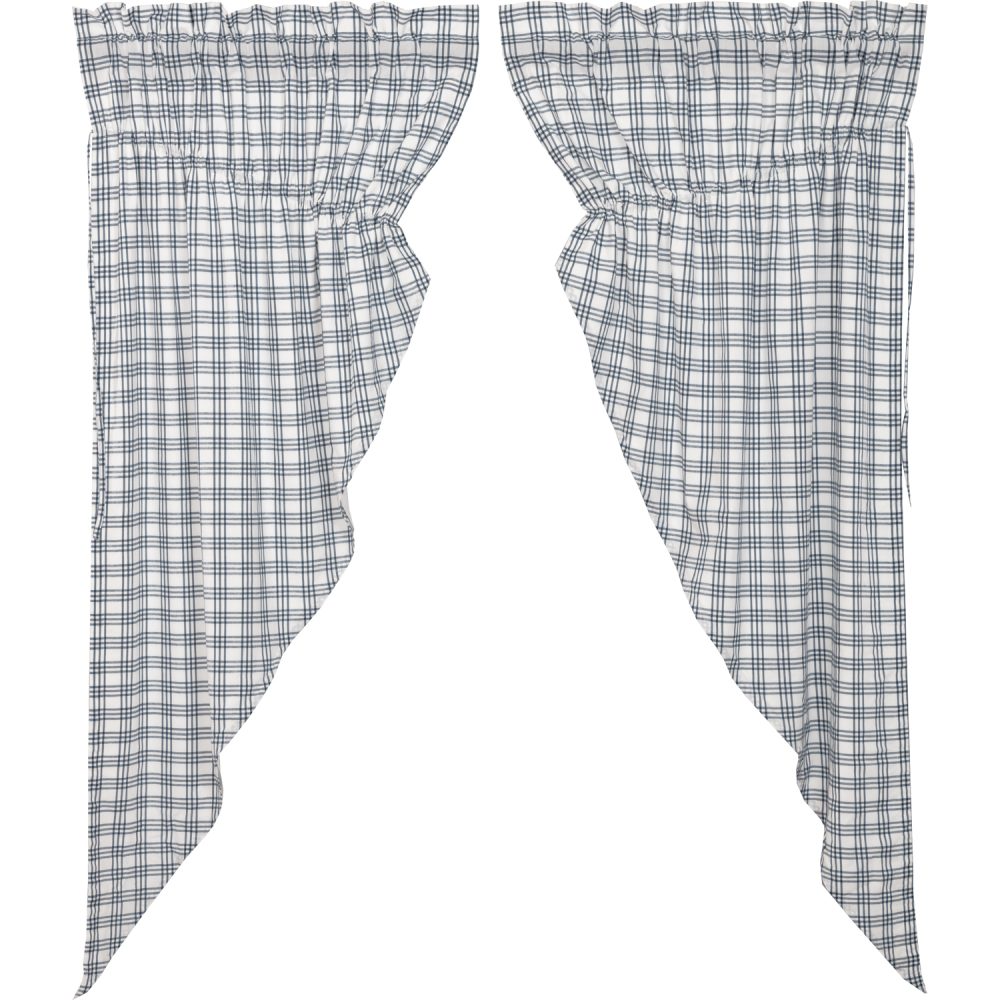 The Sawyer Mill Blue Plaid Prairie Short Panel Set creates a relaxed country feel for your home. Featuring classic denim blue and soft white plaid, these curtains are a versatile choice for accenting vintage kitchens, farmhouse laundry rooms, and more. The gracefully angled drapes perfectly frame windows providing a bit of polish for your home. Our fully lined prairie panels come with built in drawstrings to adjust each panel to meet your style needs, along with a curtain rod pocket for easy hanging.