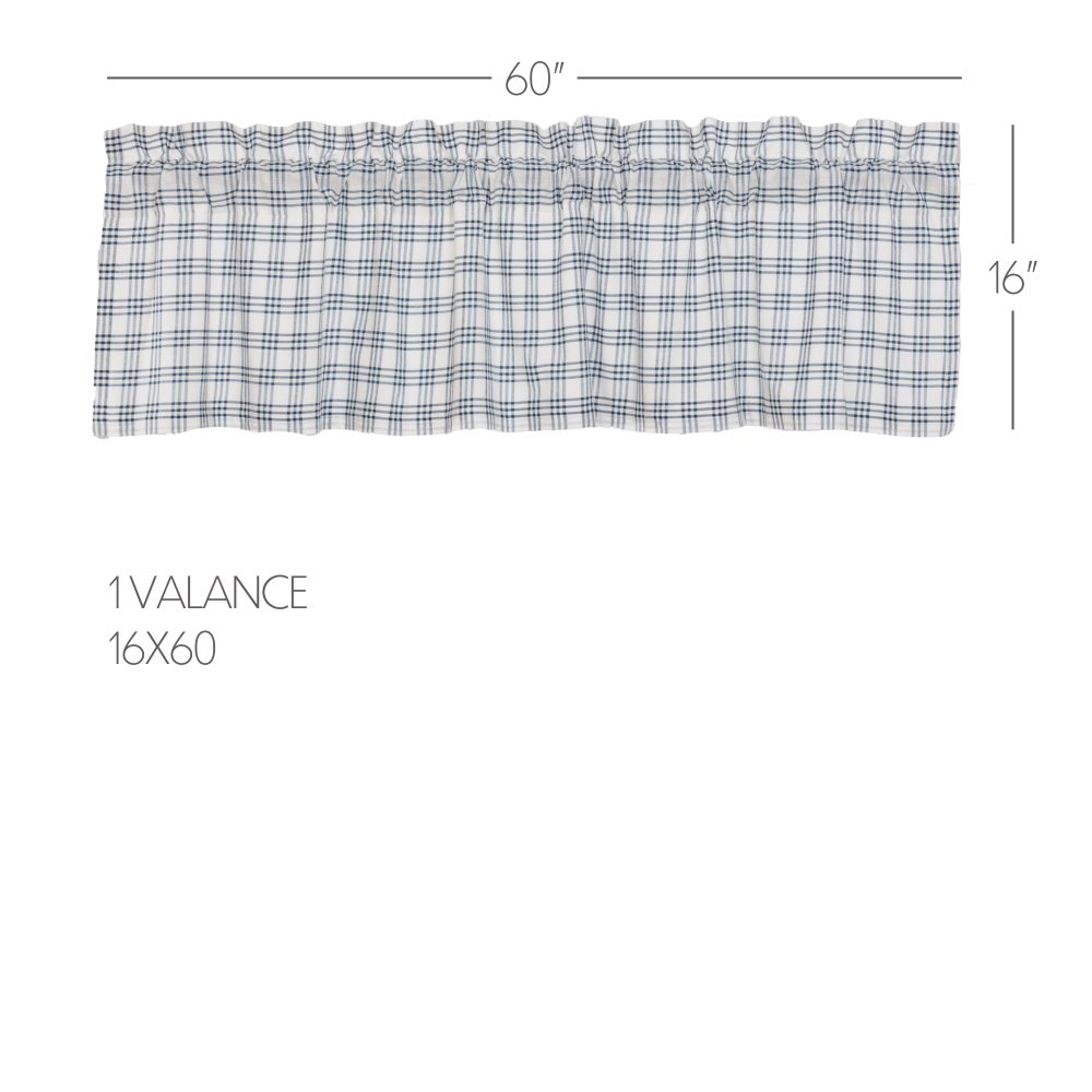 Create a clean, modern farmhouse look for your home. The Sawyer Mill Blue Plaid Valance 16x60 features beautiful denim blue striping over a white base to create a classic country plaid. Includes a soft, white cotton lining to filter sunlight and prevent fading. A rod pocket and loops offer easy hanging options.