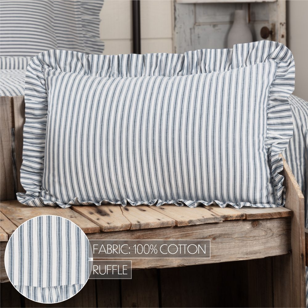 • RUFFLED EDGING: Features a wide ruffled edging in matching ticking stripe fabric.