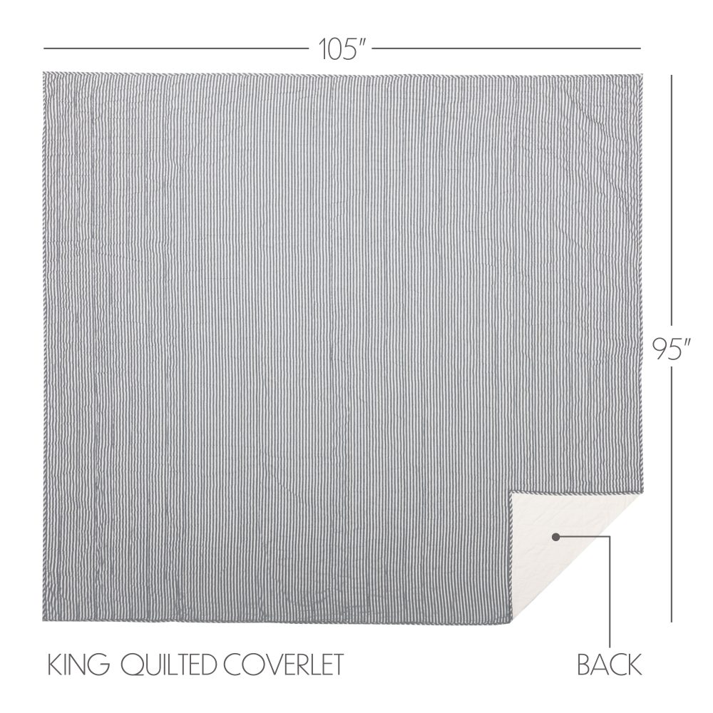 Farmhouse style is about simple designs made for everyday use crafted with durable fabrics that can keep up. In this light-weight country coverlet, denim blue and cotton white ticking stripes come together with the proven quality of over 20 years of happy customers. The Sawyer Mill Blue Ticking Stripe King Quilt Coverlet measures 105x95 and is crafted from 100 percent cotton. The light blue and white pattern is backed by solid white and creates a soft look suitable for cottage decor, vintage and modern farmhouse, and more. The timeless style coordinates with accent and foundational pieces from the Sawyer Mill Blue Collection for decor that will stand the test of time. Machine washable and iron safe.