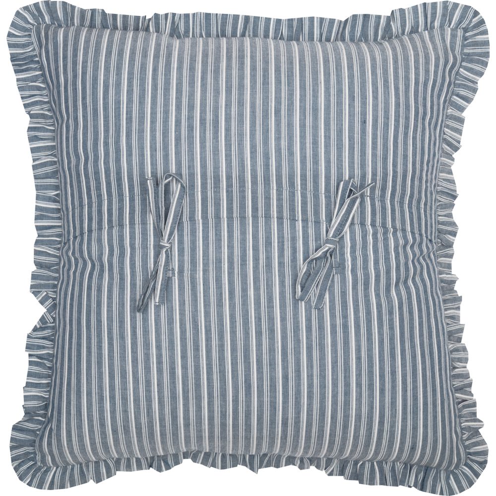 Add a touch of vintage charm to your modern farmhouse or country style home with the Sawyer Mill Blue Windmill Pillow 18x18. Featuring a distressed white windmill surrounded by "Sawyer Mill Farms" writing in white on a denim blue chambray. Finished with ruffles around the edge matching the reverse side in blue and white ticking stripes. This rustic decorative pillow is perfect for bringing in a taste of homegrown quality farming to your favorite spot in the house, sofa, or couch.