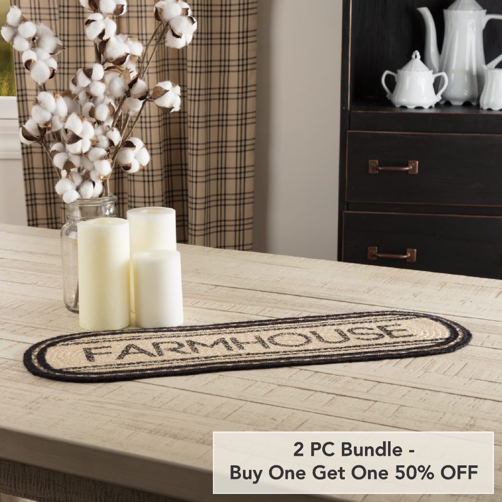 - Sku – 45735 – Sawyer Mill Charcoal Creme Farmhouse Jute Oval Runner 8×24 (2 Packages)