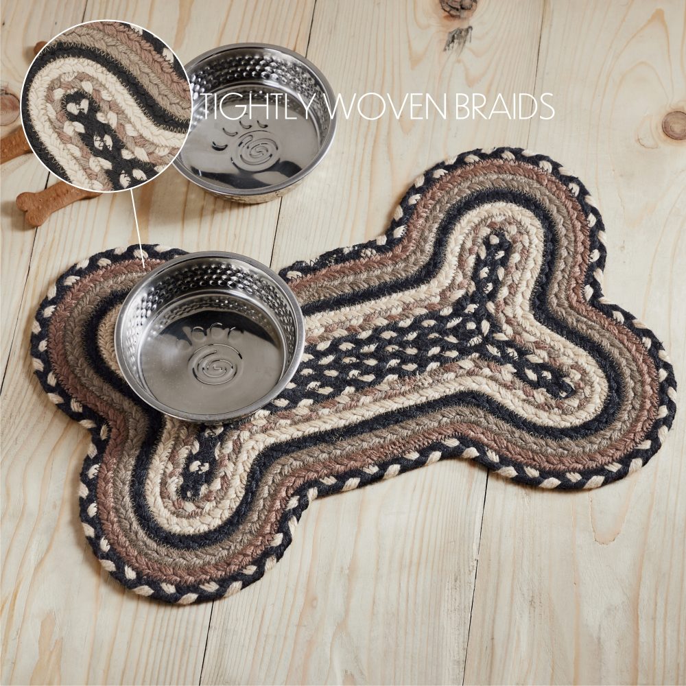 Give your pet a rug that is both stylish and practical. The Sawyer Mill Charcoal Creme Small Bone Rug measures 11.5x17.5 inches and is crafted with 100% recycled polyester material (PET) making it waterproof and durable. The bone-shaped pet rug is suitable for both indoor and outdoor use and is the perfect home for water and food bowls for small breed dogs.