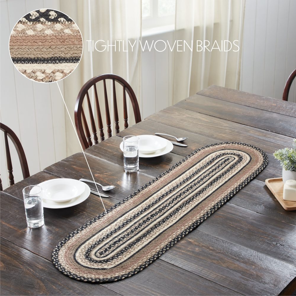 Create a joyful table for friends and family to gather round with a modern farmhouse design and classic texture. The Sawyer Mill Charcoal Creme Jute Runner includes one table runner measuring 13x48 inches made from a premium Jute blend. The rich texture of braided jute is given a modern twist with neutral black, taupe and white tones for simple, neutral style. Complete your tabletop decor with other pieces from the Sawyer Mill Collection by VHC for modern farmhouse style.
