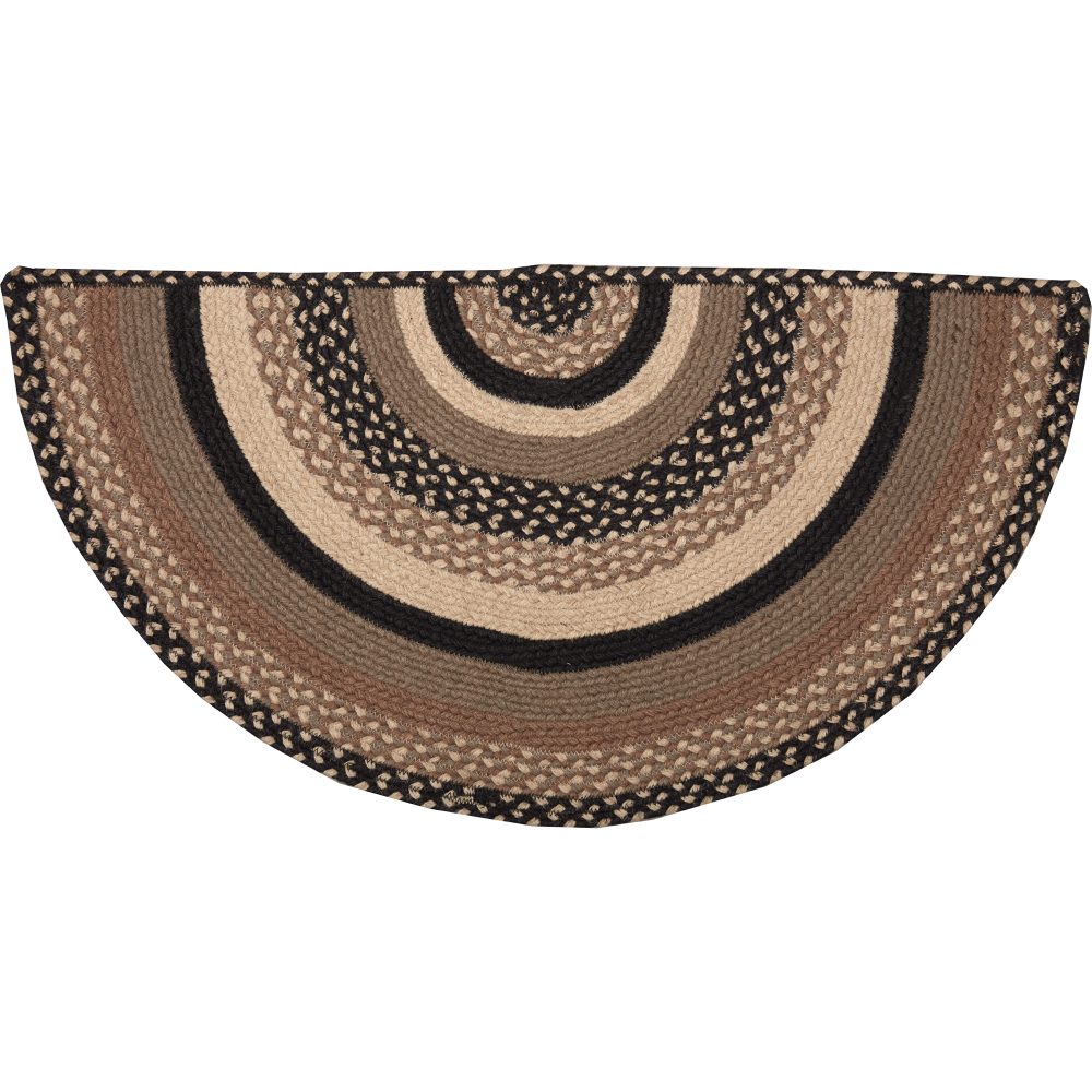 Add modern farmhouse charm to your home with simple, neutral colors in a curl-resistant jute blend that adds style and safety anywhere a small accent rug is needed. The Sawyer Mill Charcoal Creme Jute Rug measures 16.5x33 inches and features a classic half circle shape and tight braids constructed with a durable jute blend. The special blend relaxes faster and stays flat. The unique shape makes this rug the perfect fit for doorways and in front of kitchen sinks. Features a blend of bleached white, asphalt black, and grey taupe for a modern, neutral look that complements a wide array of country farmhouse decor.