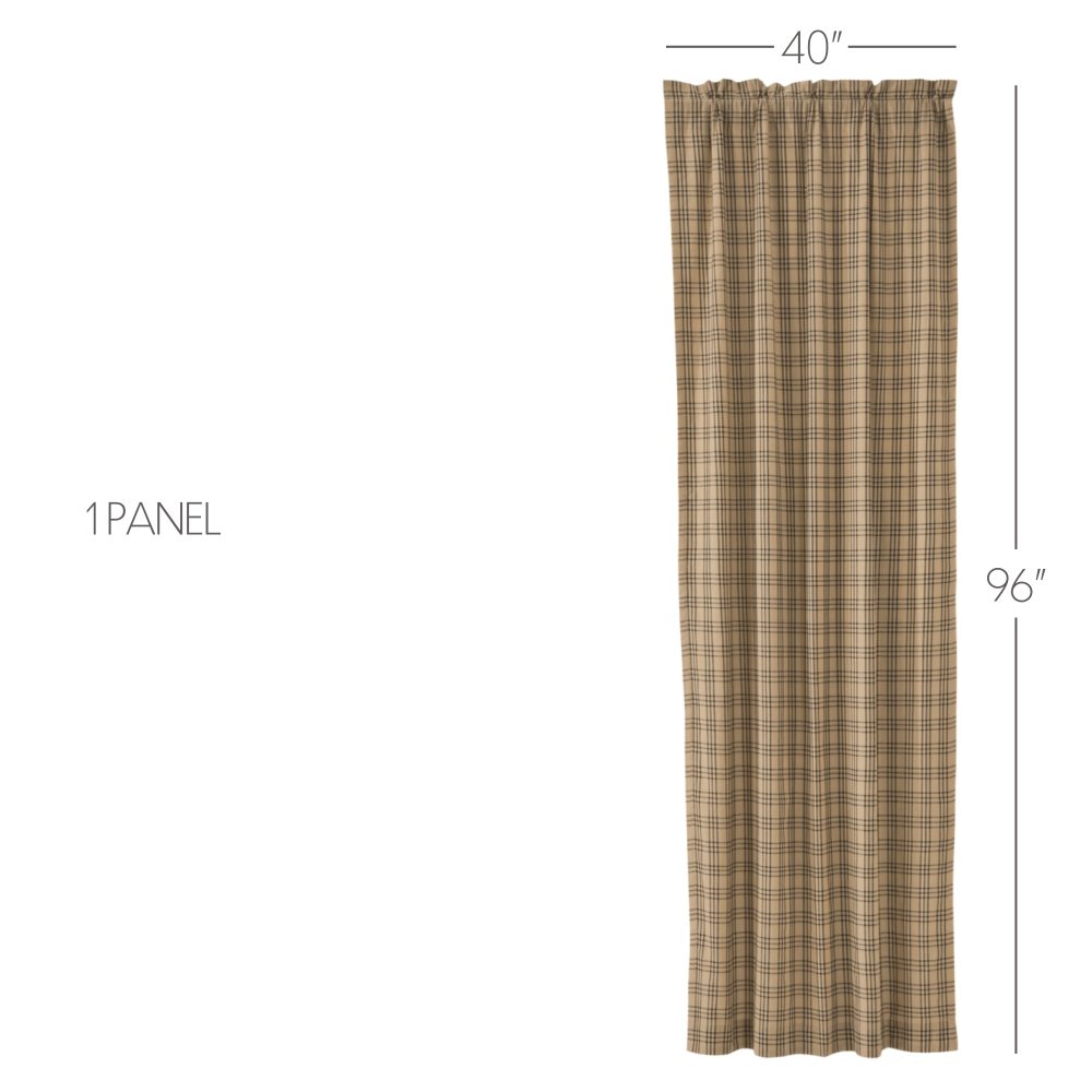 Create a clean, modern farmhouse look for your home. The Sawyer Mill Charcoal Plaid Panel 96x40 features beautiful charcoal black striping over a deep tan base to create a classic, rustic plaid. Includes a soft, white cotton lining to filter sunlight and prevent fading. A rod pocket and loops offer easy hanging options.