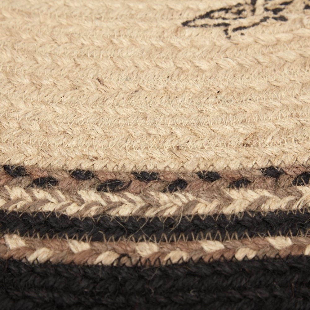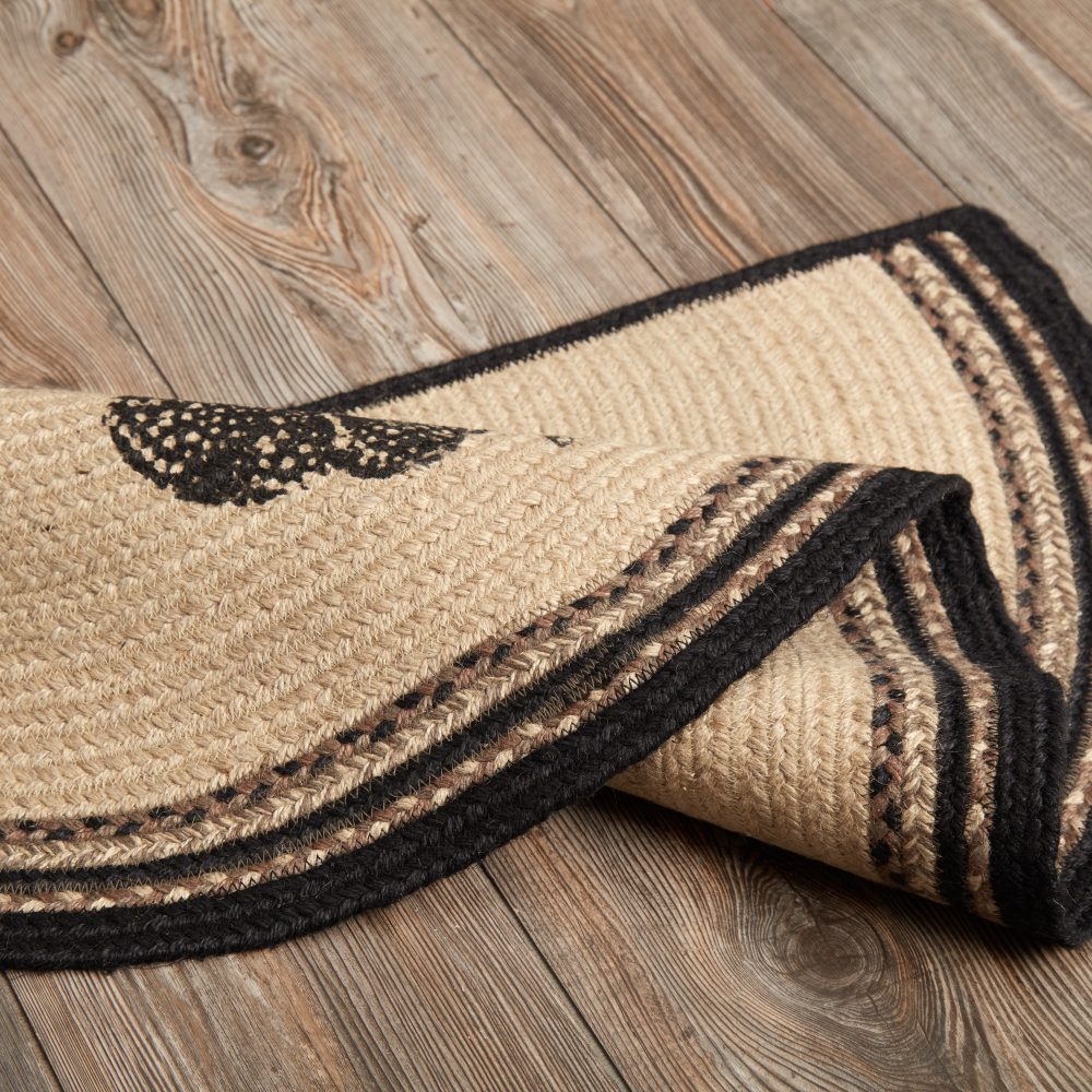 Add modern farmhouse charm to your home with a black and white design with barnyard charm in a curl-resistant jute blend that adds style and safety anywhere a small accent rug is needed. The Sawyer Mill Charcoal Poultry Jute Rug measures 16.5x33 inches and features a classic half circle shape and tight braids constructed with a durable jute blend. The special blend relaxes faster and stays flat. The unique shape makes this rug the perfect fit for doorways and in front of kitchen sinks. Features a blend bleached white, asphalt black and grey taupe with a weathered stenciling of a chicken and rooster for a vintage farmyard look that complements a wide array of country farmhouse decor.