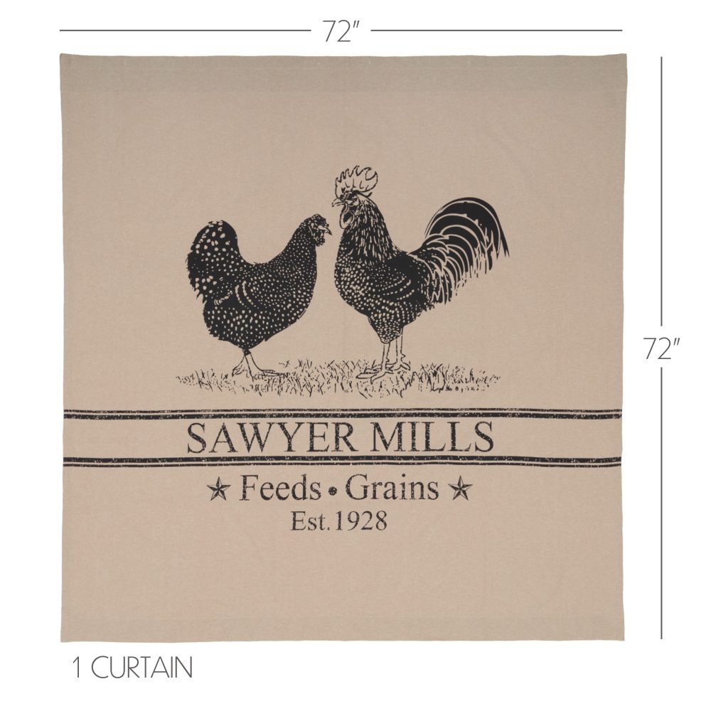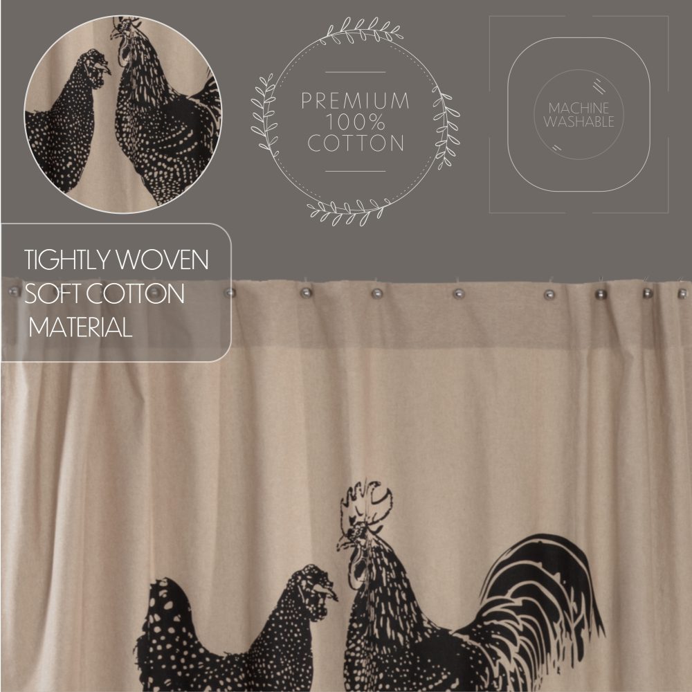 Khaki cotton and distressed black stenciling create a design to capture the essence of modern farmhouse decor. The Sawyer Mill Charcoal Poultry Shower Curtain features a khaki chambray with wide black stenciling. Prominently features stenciled poultry over grain-sack-style printing. Measures 72 by 72 inches to fit standard sized showers and baths. Easily hang this classic country bath curtain with shower hooks of your choosing (not included) using the button holes attached. A 3" rod pocket is also available as an alternative hanging method.