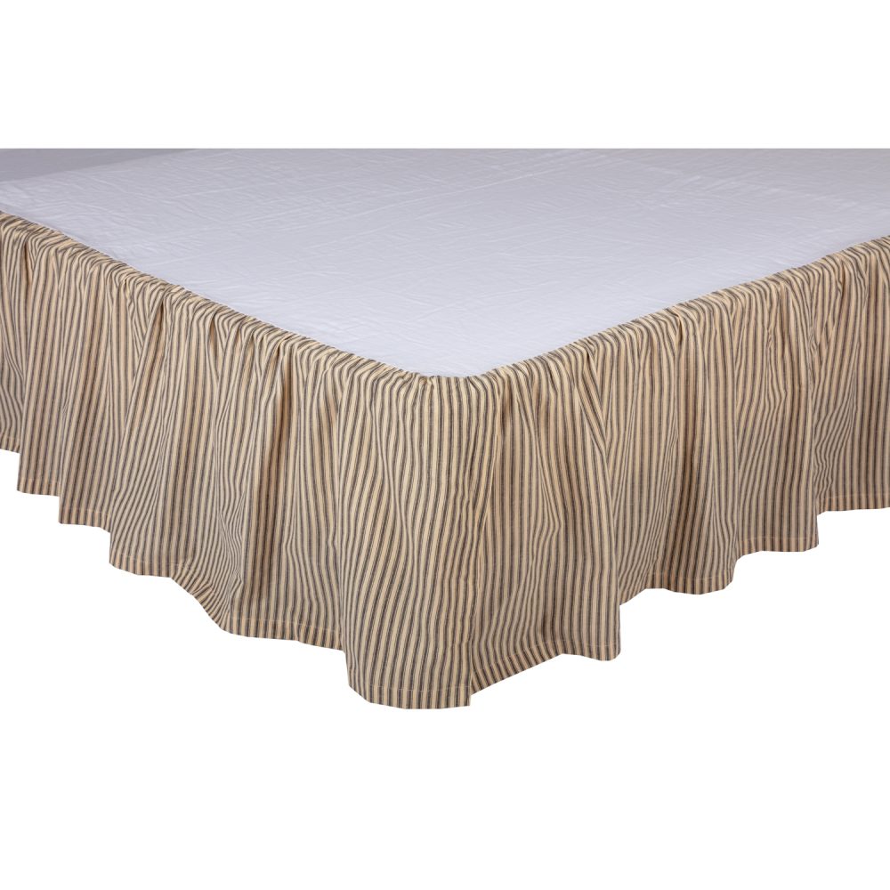 Capture classic farmhouse style with neutral colors and timeless patterns. The Sawyer Mill Charcoal Ticking Stripe King Bedskirt 78x80x16 completes the look of your vintage country farmhouse bedding with charcoal grey and vintage creme stripes in a traditional ticking stripe pattern. This cotton dust ruffle is the perfect blend of practical and stylish. Features a long 16-inch drop to ensure that the fabric reaches your floor for a neat, put-together look that blocks under-bed storage from view while also keeping dust out of hard-to-reach areas. VHC bedskirts are also designed with split corners and slight ruffling for less fuss and a great fit every time. Coordinates with the Sawyer Mill Collection by VHC for a complete modern farmhouse look for your bedroom featuring soft plaids and clean stripes in neutral, easy-to-match colors. Machine washable and iron safe.