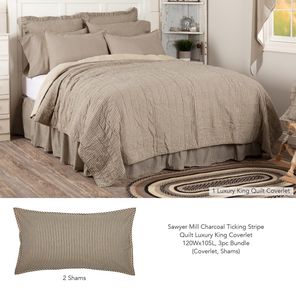 • SKU: 51925 – Sawyer Mill Charcoal Ticking Stripe Quilt Luxury King Coverlet 120Wx105L (1 Package)
