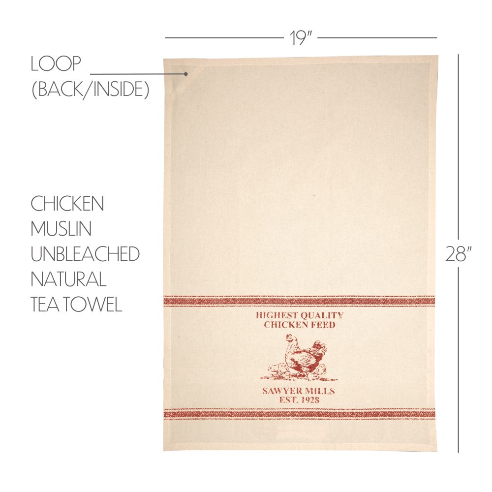 Sawyer Mill Red Chicken Muslin Unbleached Natural Tea Towel 19×28