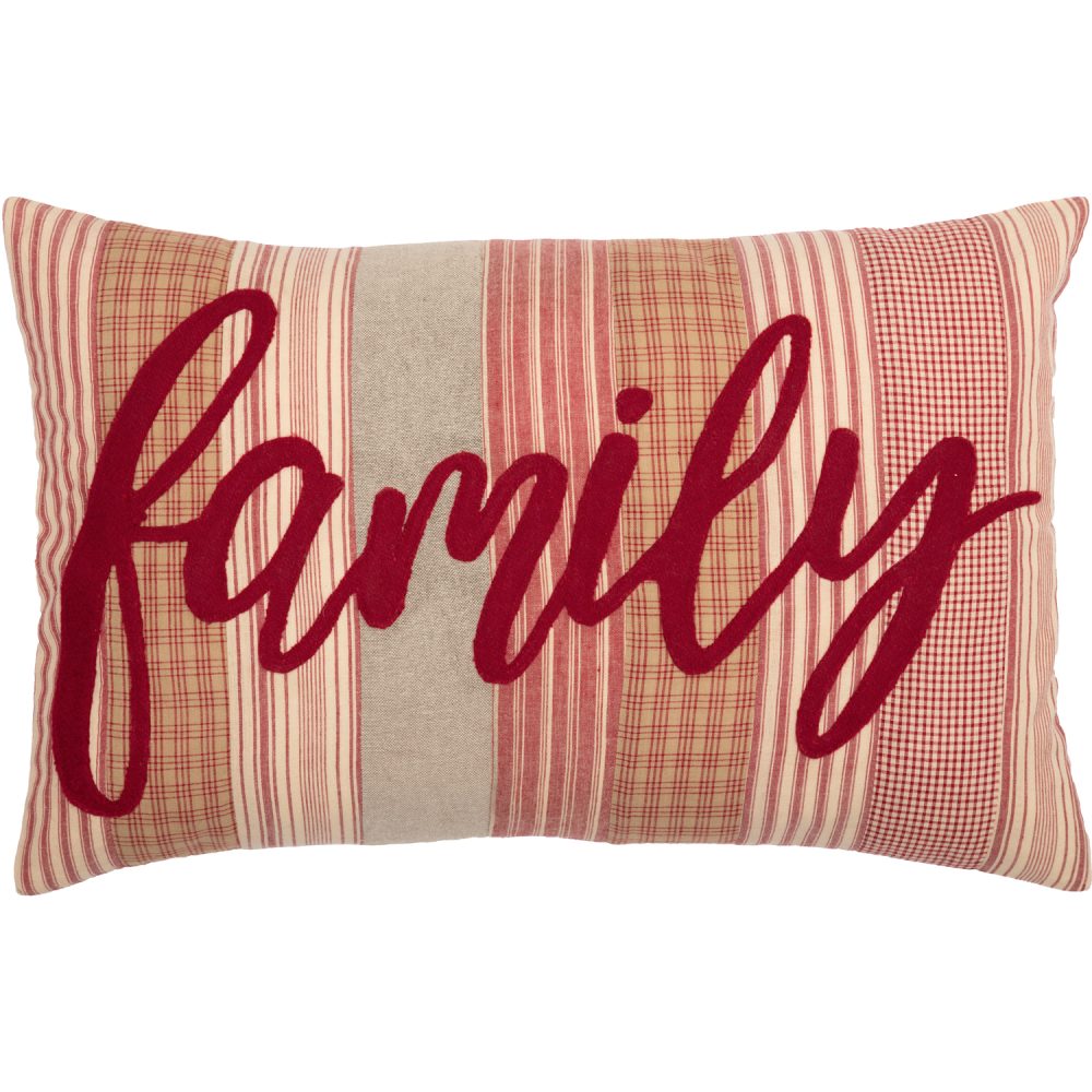 Neutral khaki, country red and creme in a mix of striped and plaid fabric add a classic farmhouse accent to your room. The Sawyer Mill Red Family Pillow measures 14 by 22 inches. The cozy, rectangular accent pillow features a patchwork base in neutral colors and patterns softened by an applique accent reading, "family". Backed in a solid, warm khaki with button-style closures. Constructed with a 100 percent cotton shell with a polyester fill. Machine washable and iron safe. Coordinates with Sawyer Mill Collection by VHC for vintage farmhouse style.